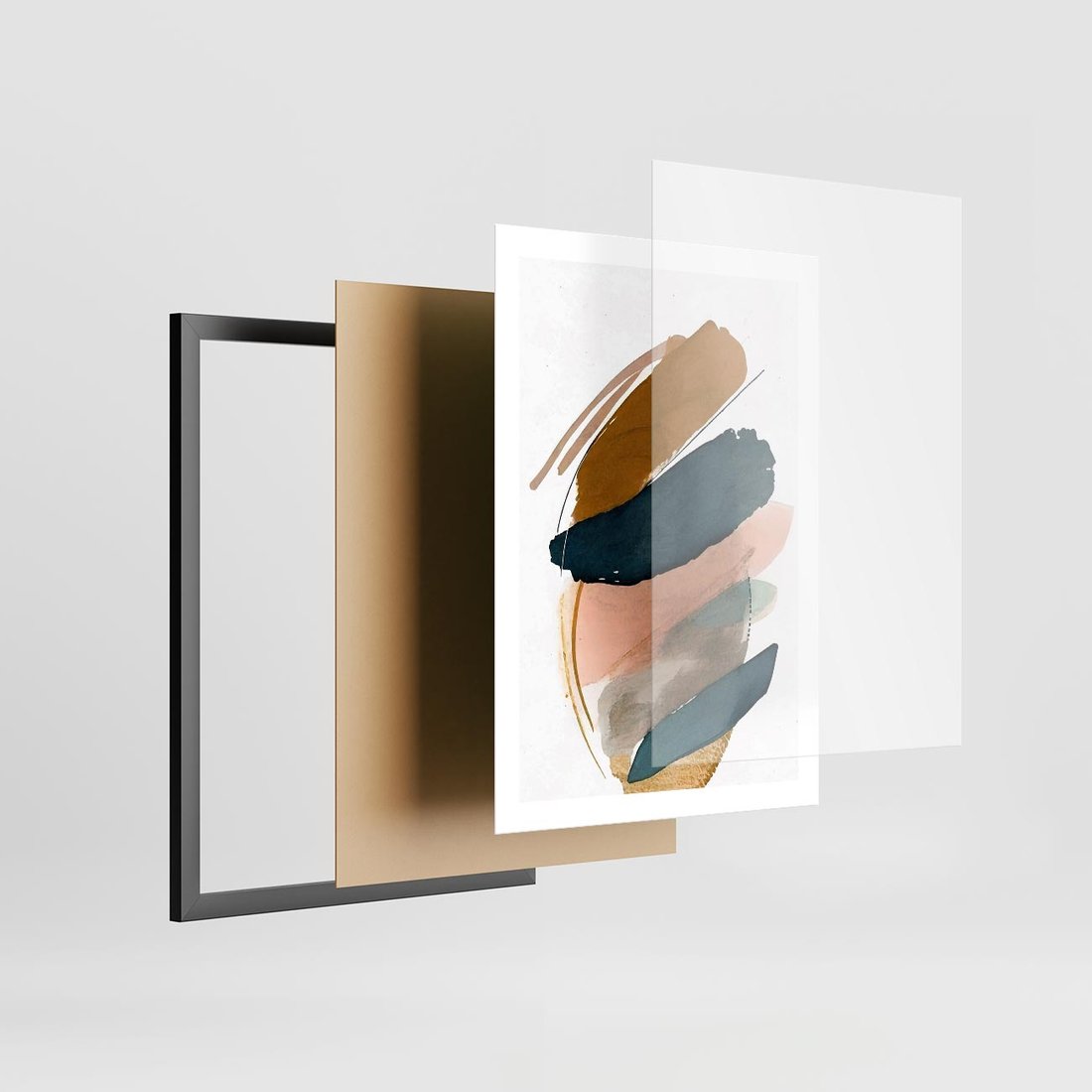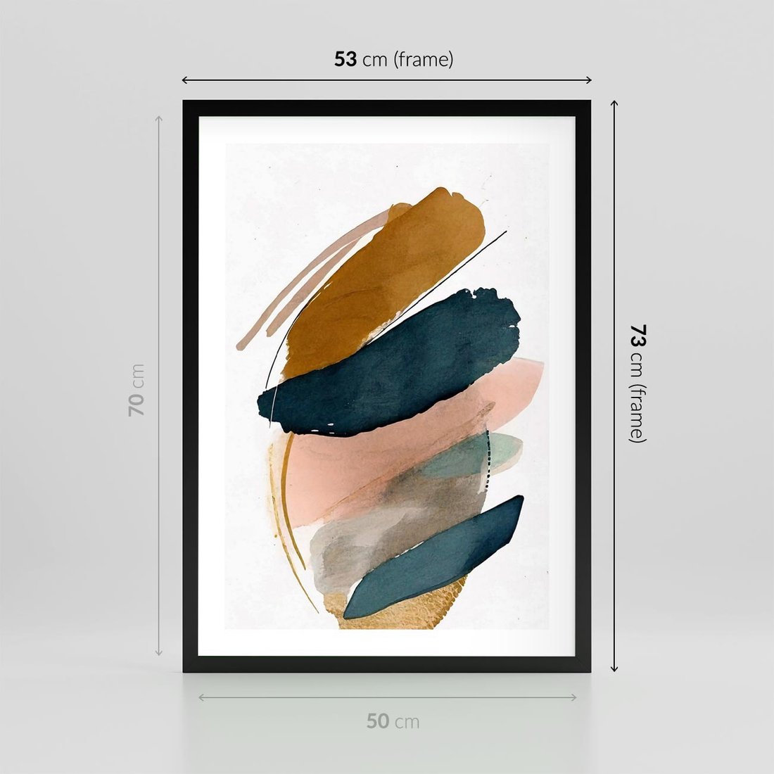 Plakat w ramie 50x70 - Migocące Impresje Przestrzeni - abstrakcyjny obraz, kolory ciepłe - rama czarna