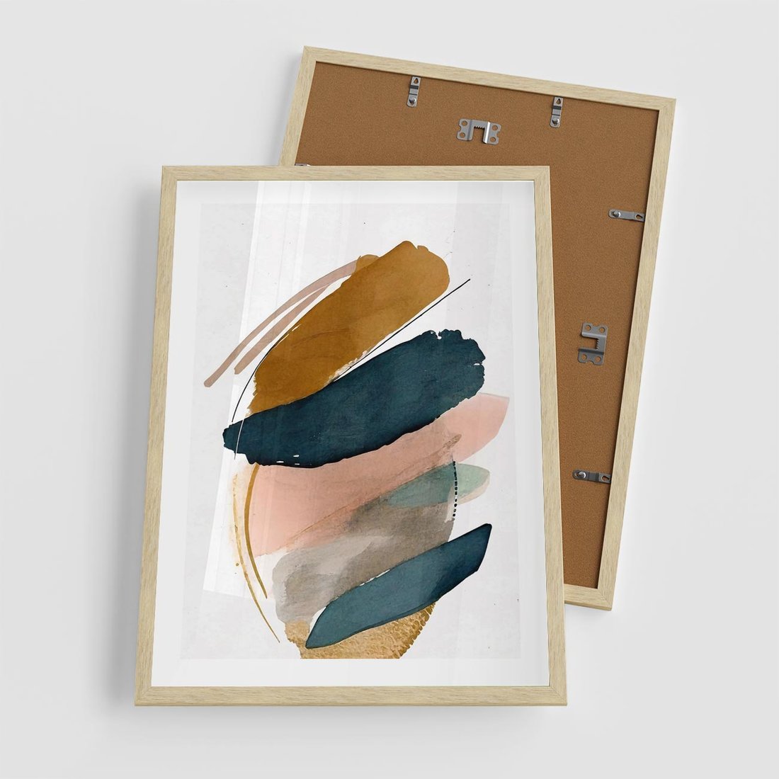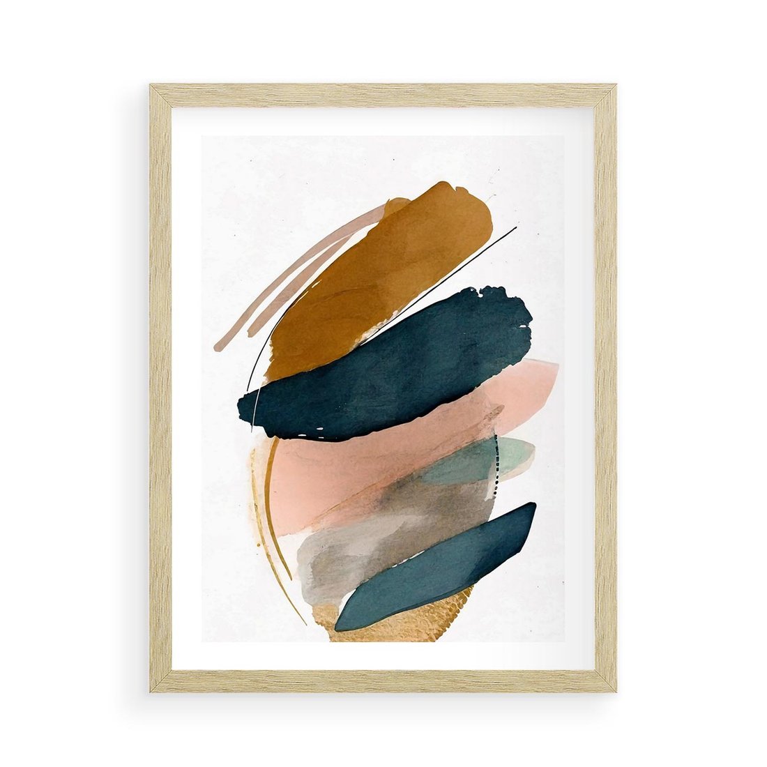 Plakat w ramie 50x70 - Migocące Impresje Przestrzeni - abstrakcyjny obraz, kolory ciepłe - rama drewno