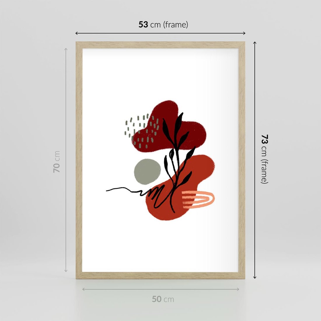 Plakat w ramie 50x70 - Migocące Kształty Liści - bstrakcyjna sztuka, boho kształty - rama drewno