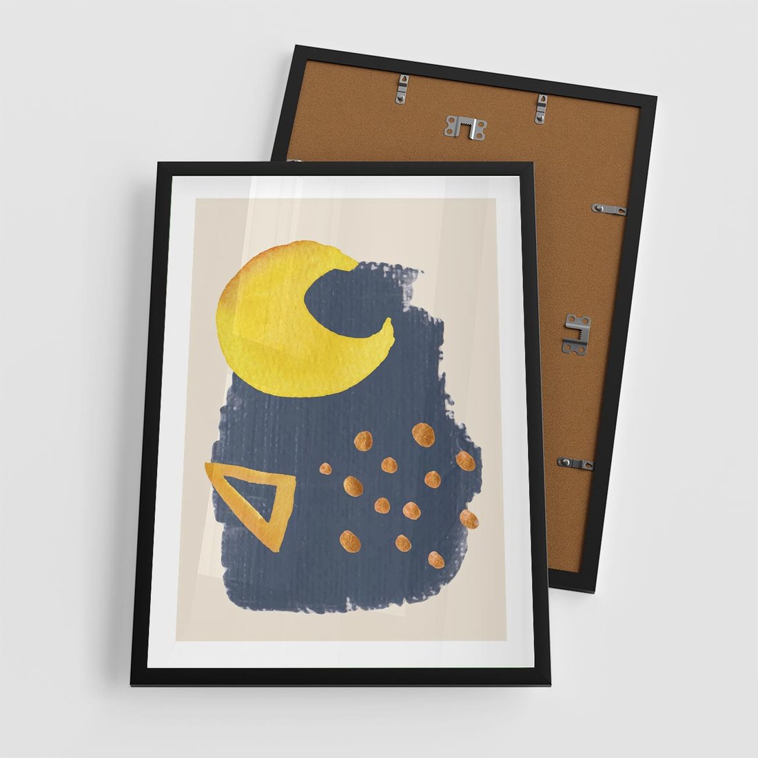 Nasz plakat to abstrakcyjna akwarelowa plama w intensywnym granatowym odcieniu, z tłem przedstawiającym księżyc. To wyjątkowe dzieło sztuki wprowadzi tajemniczą i mistyczną atmosferę do Twojej przestrzeni, zachwycając wyrazistym kontrastem i emocjonalnym oddziaływaniem.