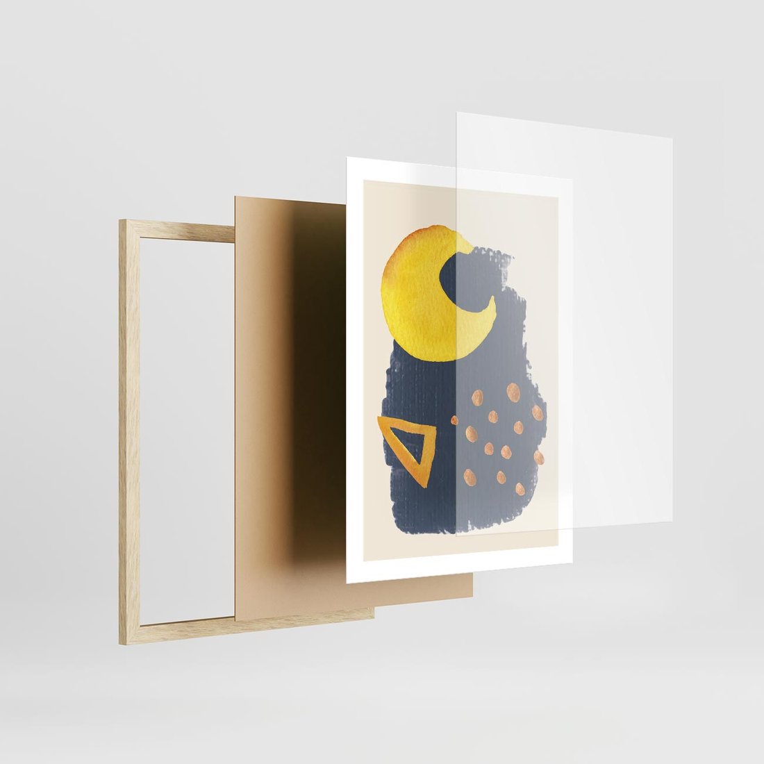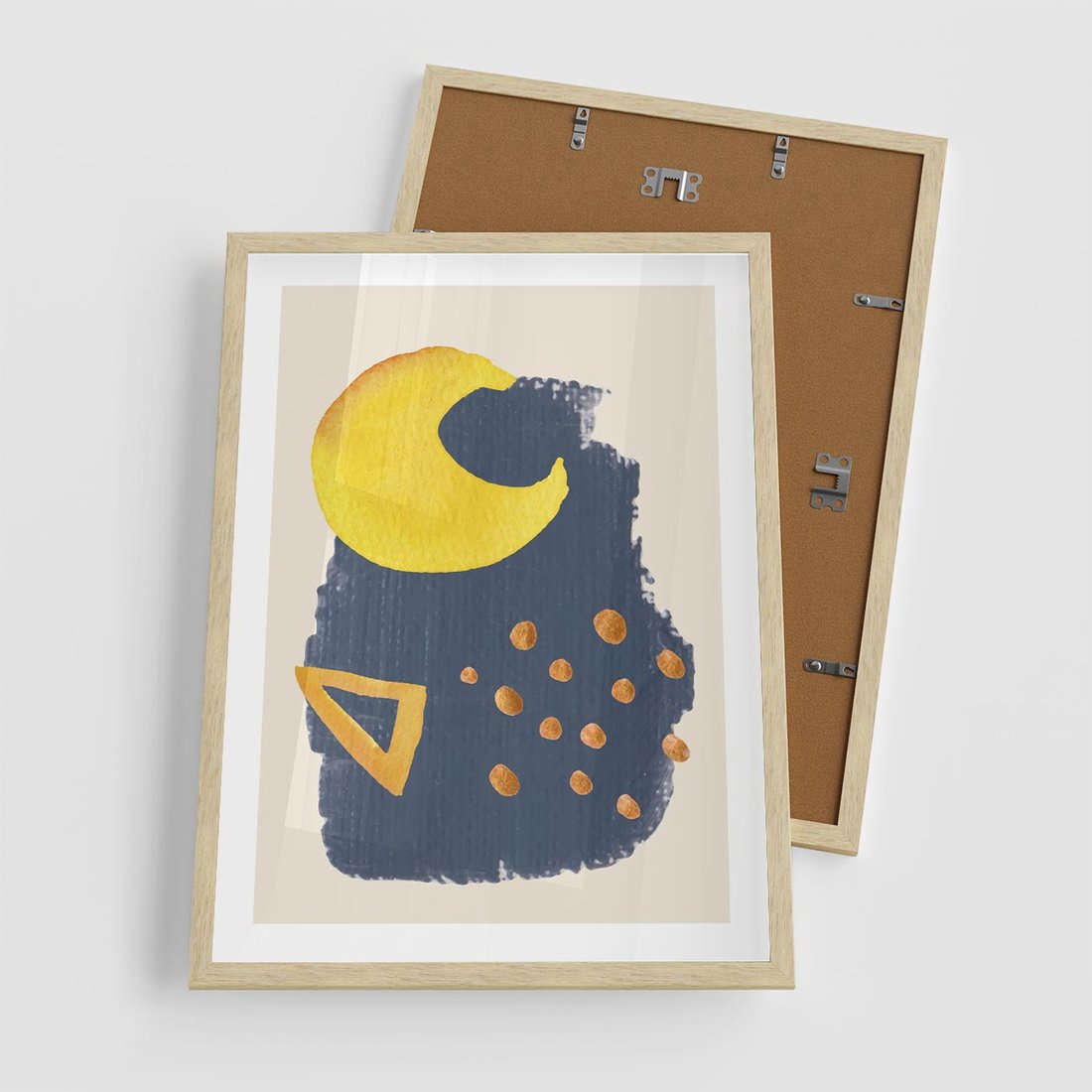 Nasz plakat to abstrakcyjna akwarelowa plama w intensywnym granatowym odcieniu, z tłem przedstawiającym księżyc. To wyjątkowe dzieło sztuki wprowadzi tajemniczą i mistyczną atmosferę do Twojej przestrzeni, zachwycając wyrazistym kontrastem i emocjonalnym oddziaływaniem.