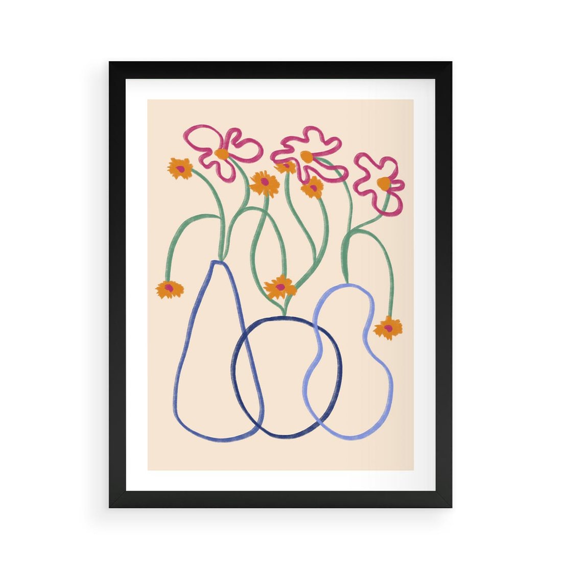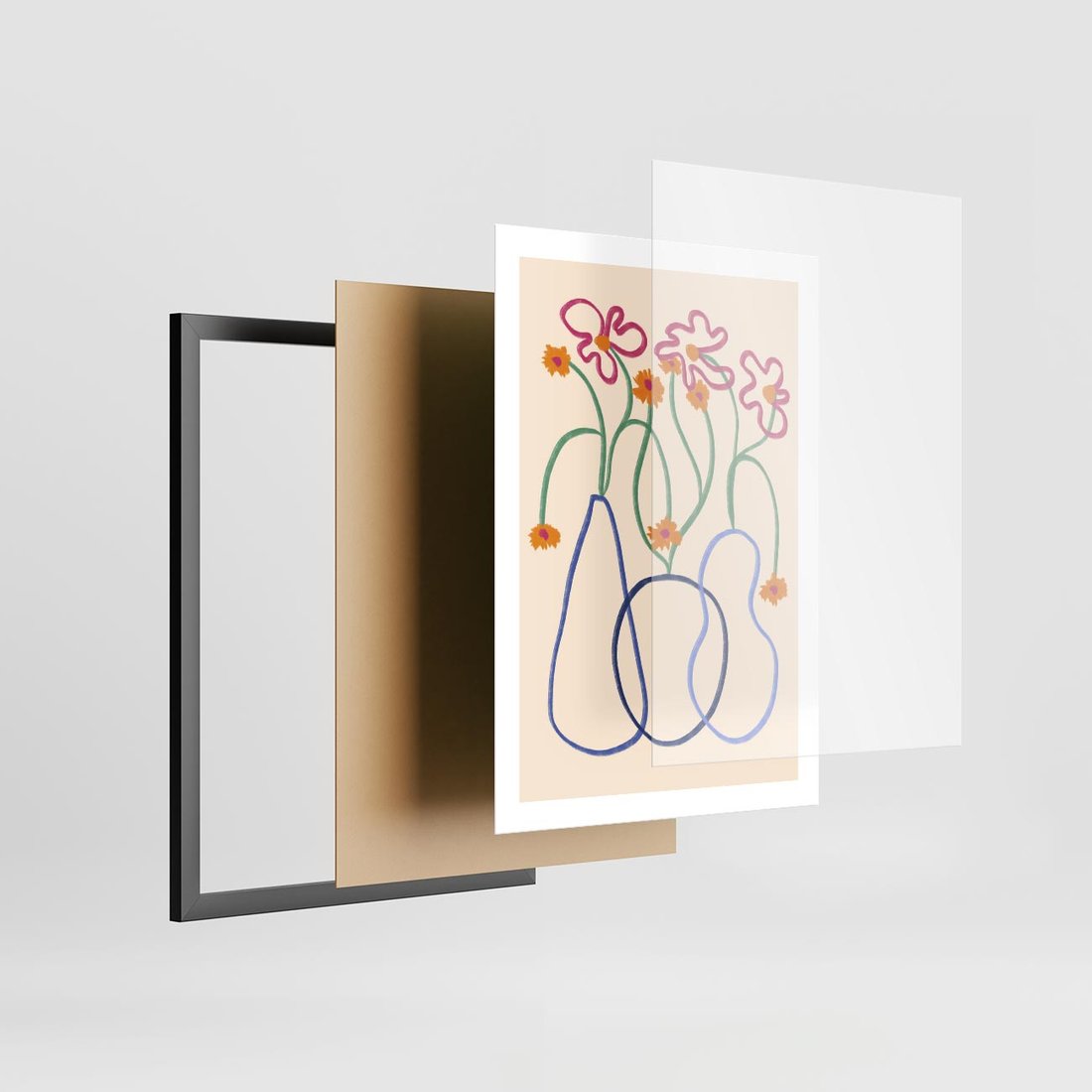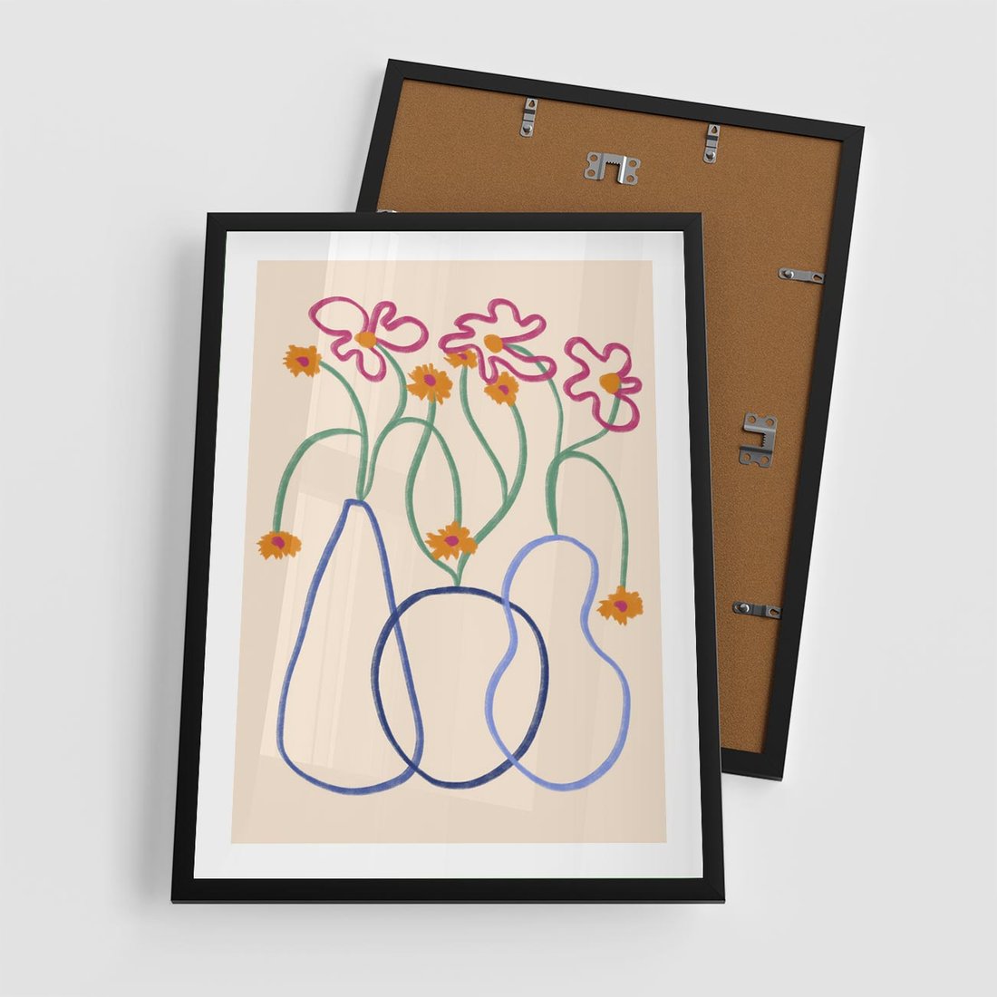 Ten minimalistyczny abstrakcyjny obraz prezentuje prymitywne kwiatki za pomocą delikatnych, kolorowych linii. Kompozycja jest subtelna, a jednocześnie pełna wyrazu, tworząc unikalne połączenie prostoty i artystycznego wyrazu. To idealny dodatek do nowoczesnych wnętrz, dodający im charakteru i oryginalności.