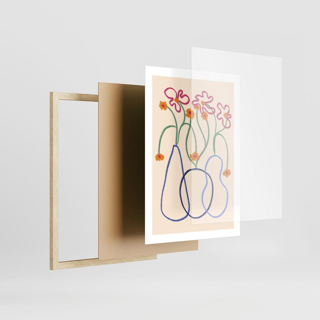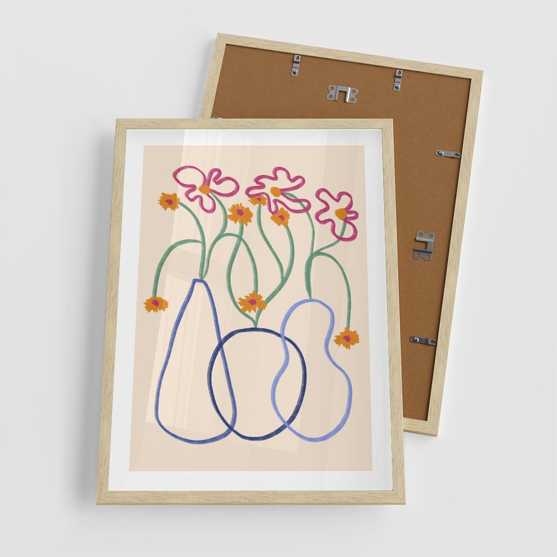 Ten minimalistyczny abstrakcyjny obraz prezentuje prymitywne kwiatki za pomocą delikatnych, kolorowych linii. Kompozycja jest subtelna, a jednocześnie pełna wyrazu, tworząc unikalne połączenie prostoty i artystycznego wyrazu. To idealny dodatek do nowoczesnych wnętrz, dodający im charakteru i oryginalności.