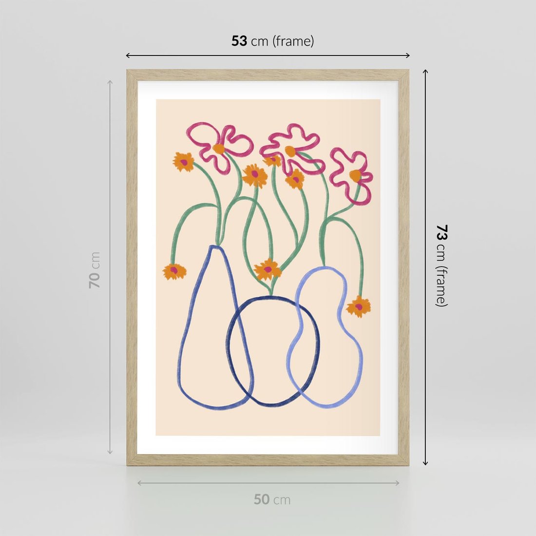 Plakat w ramie 50x70 - Migocące Pastelowe Impresje - minimalistyczny abstrakcyjny obraz, prymitywne kwiatki - rama drewno