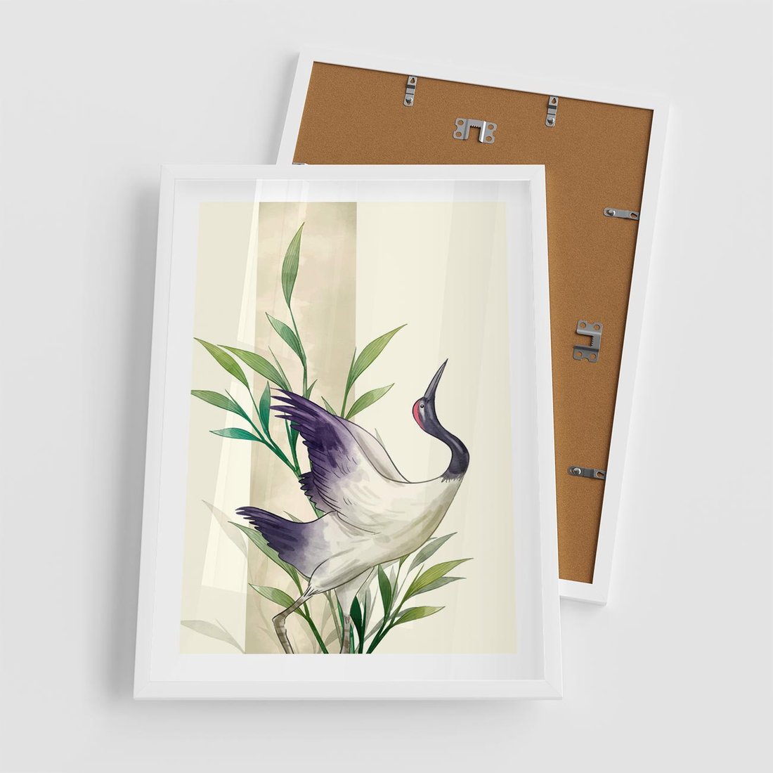 Plakat w ramie 50x70 - Migocące Ptaki - japońska sztuka, ptak - rama biała