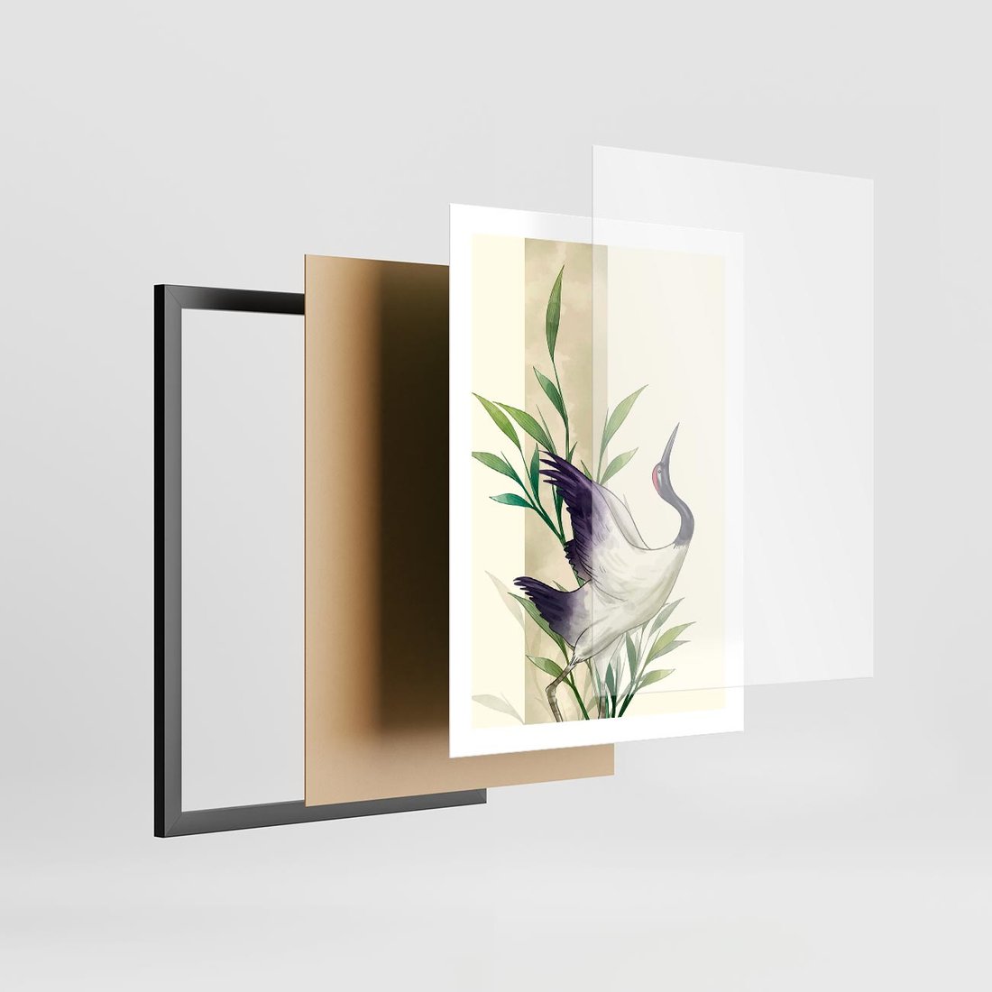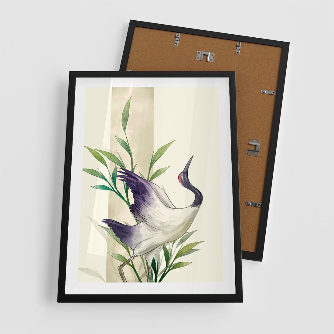 Plakat w ramie 50x70 - Migocące Ptaki - japońska sztuka, ptak - rama czarna