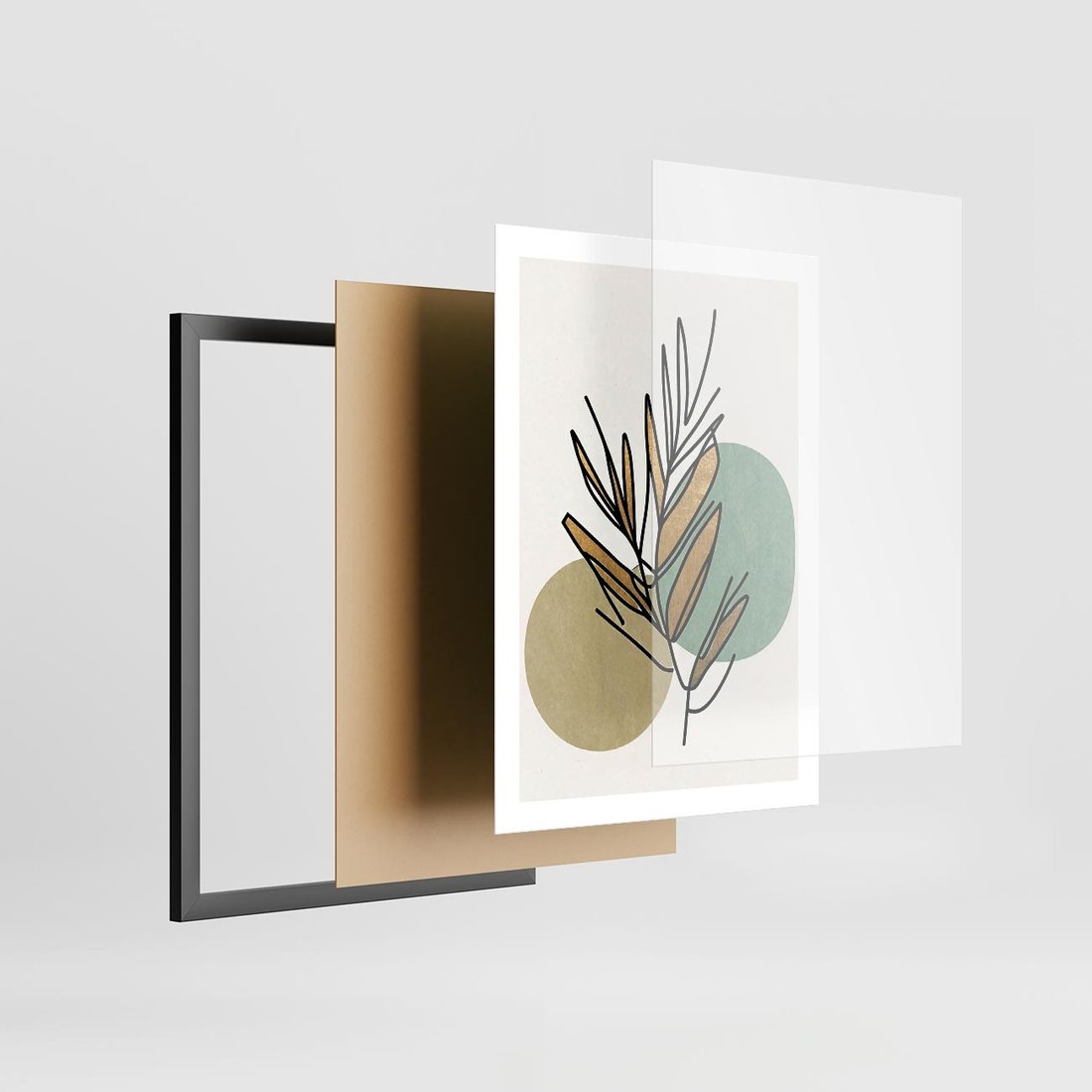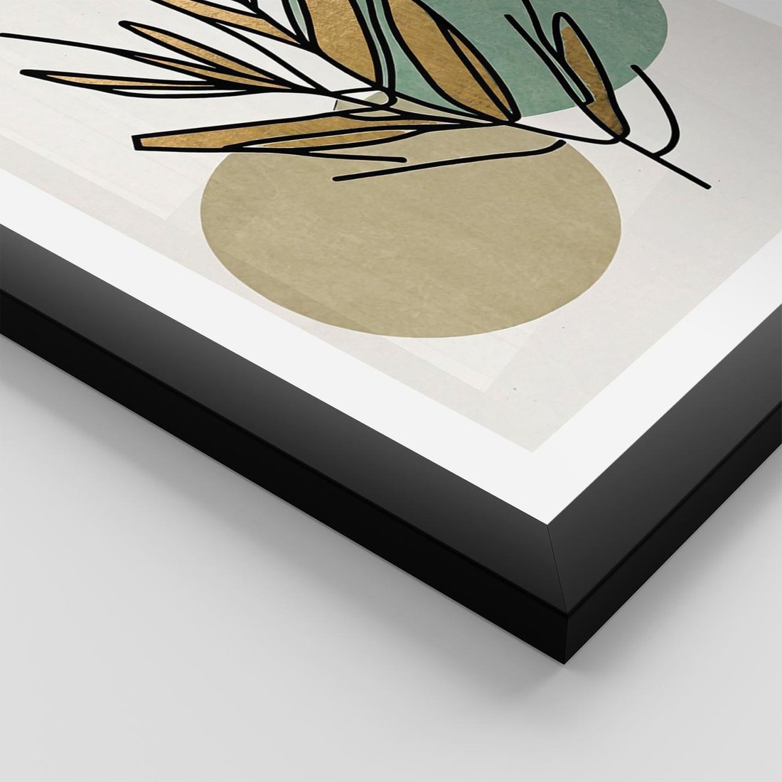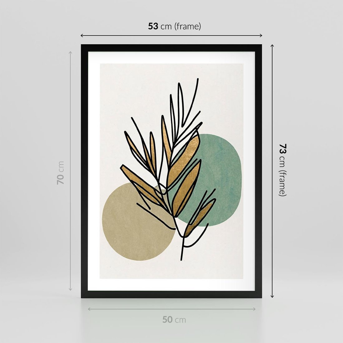 Plakat w ramie 50x70 - Migocące Ścieżki Wizji - abstrakcyjny obraz boho, liście - rama czarna
