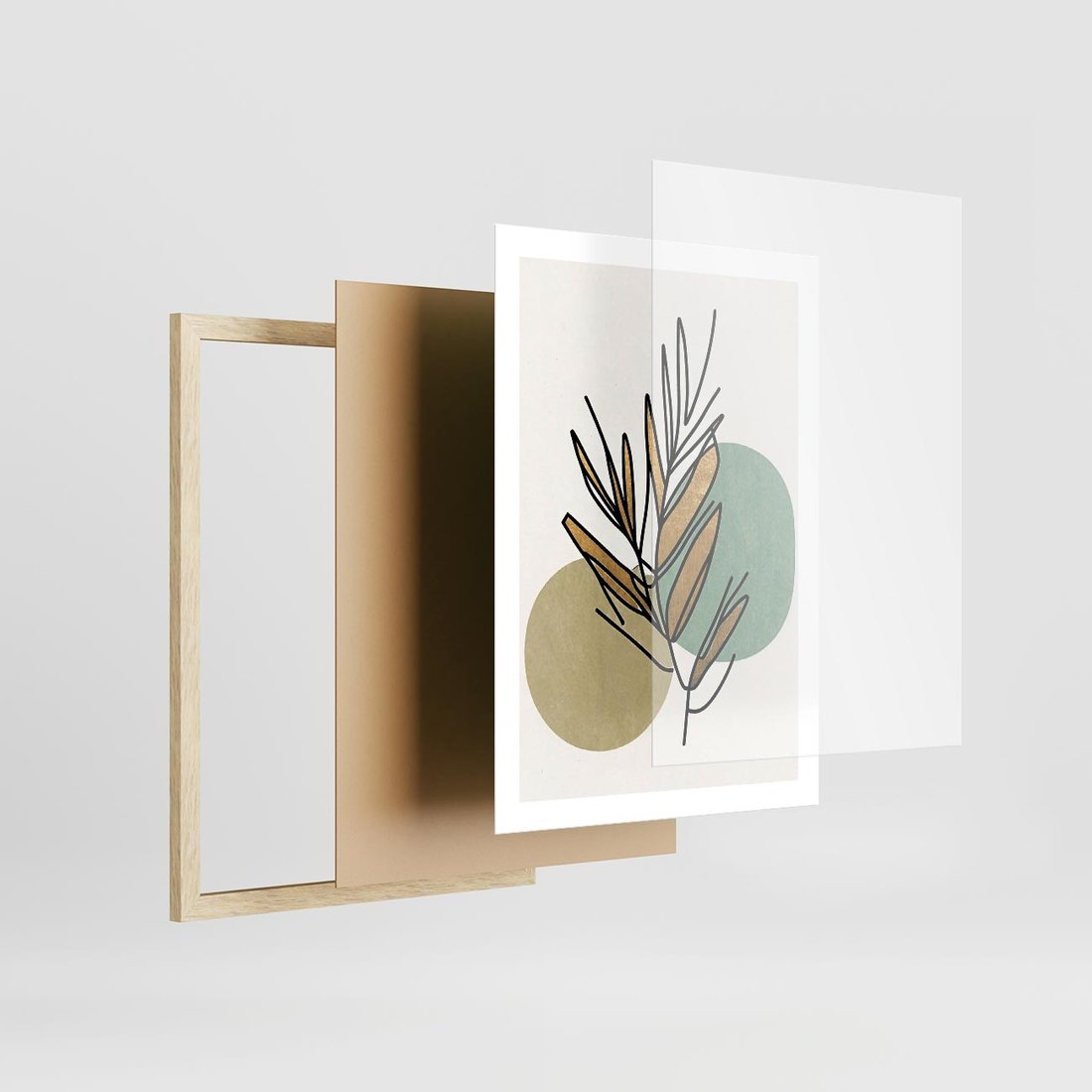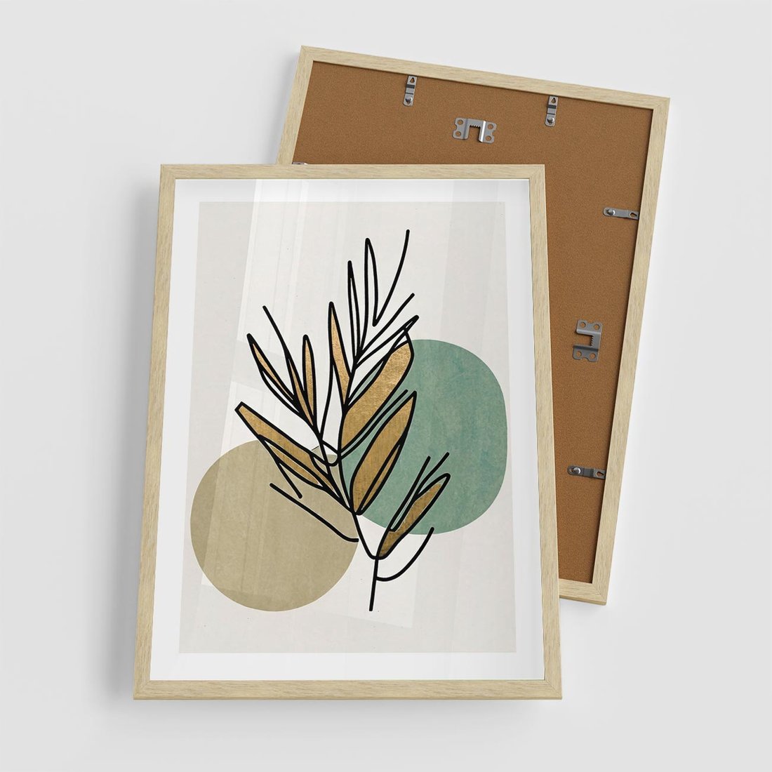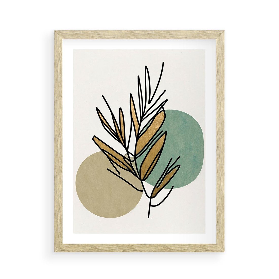Plakat w ramie 50x70 - Migocące Ścieżki Wizji - abstrakcyjny obraz boho, liście - rama drewno