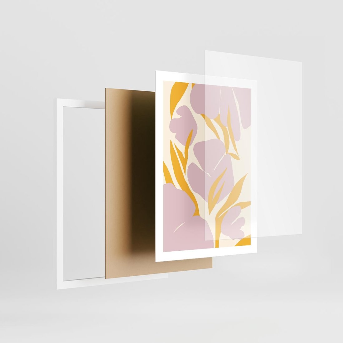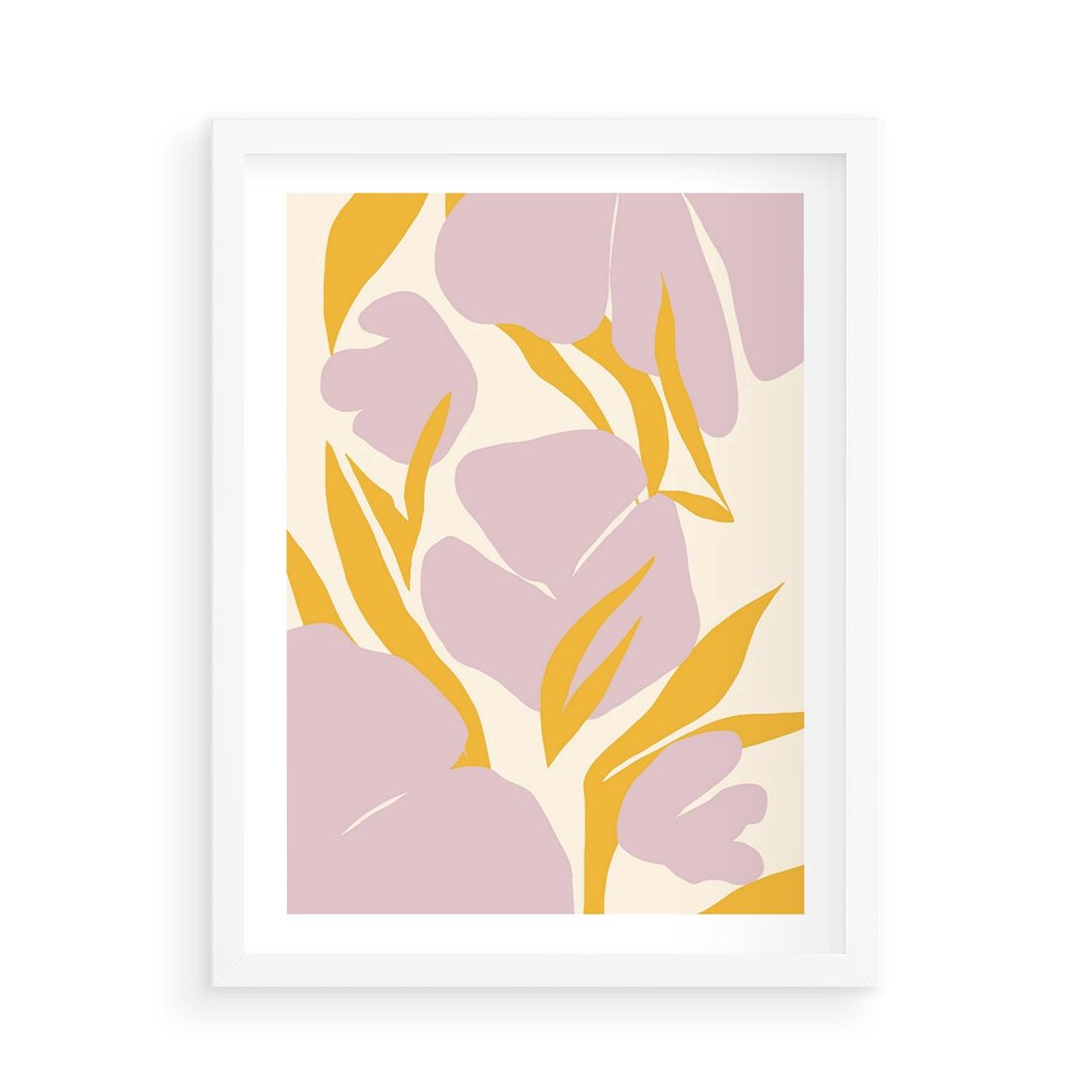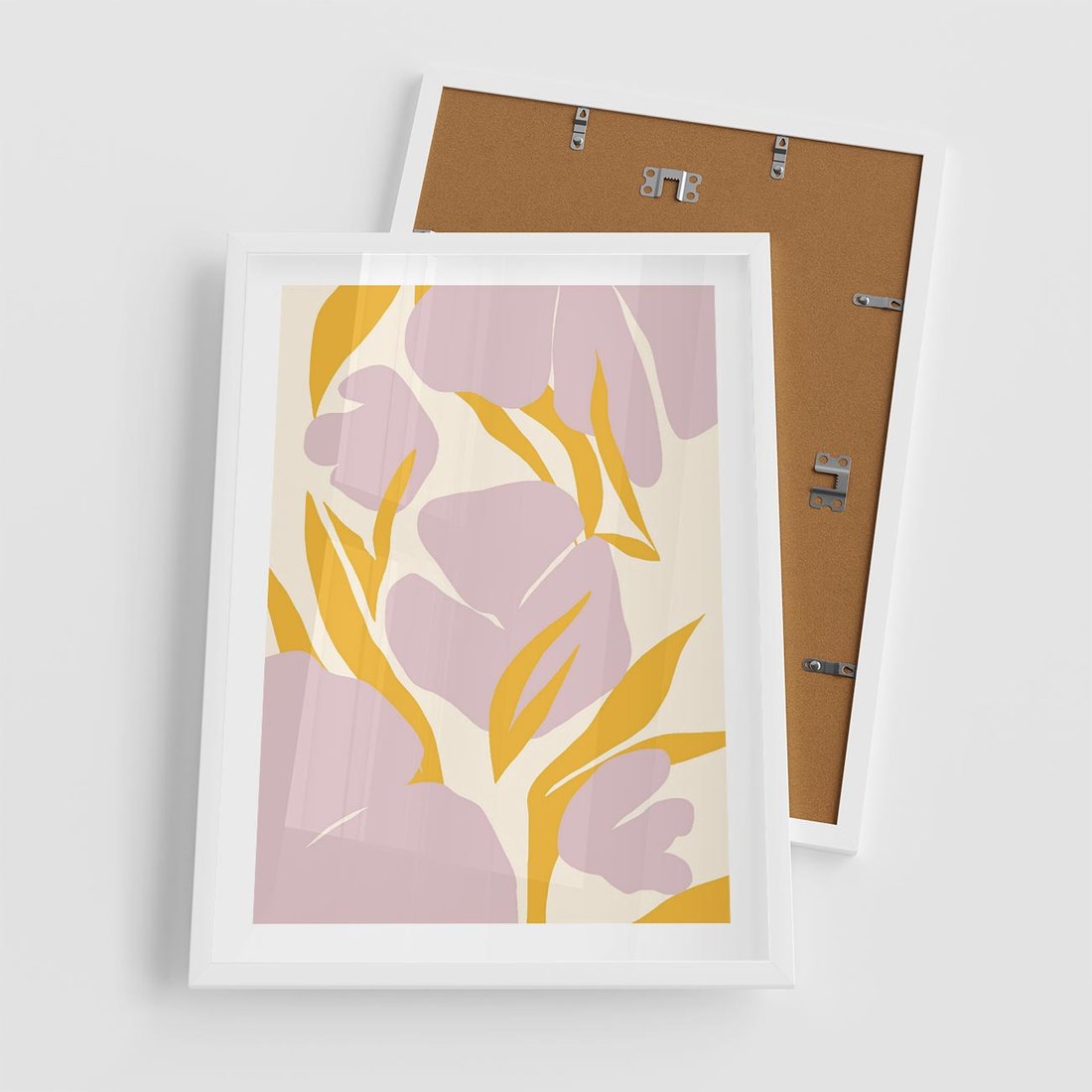 Plakat w ramie 50x70 - Migocące Wibracje - abstrakcyjne kwiaty, pastelowe kolory - rama biała