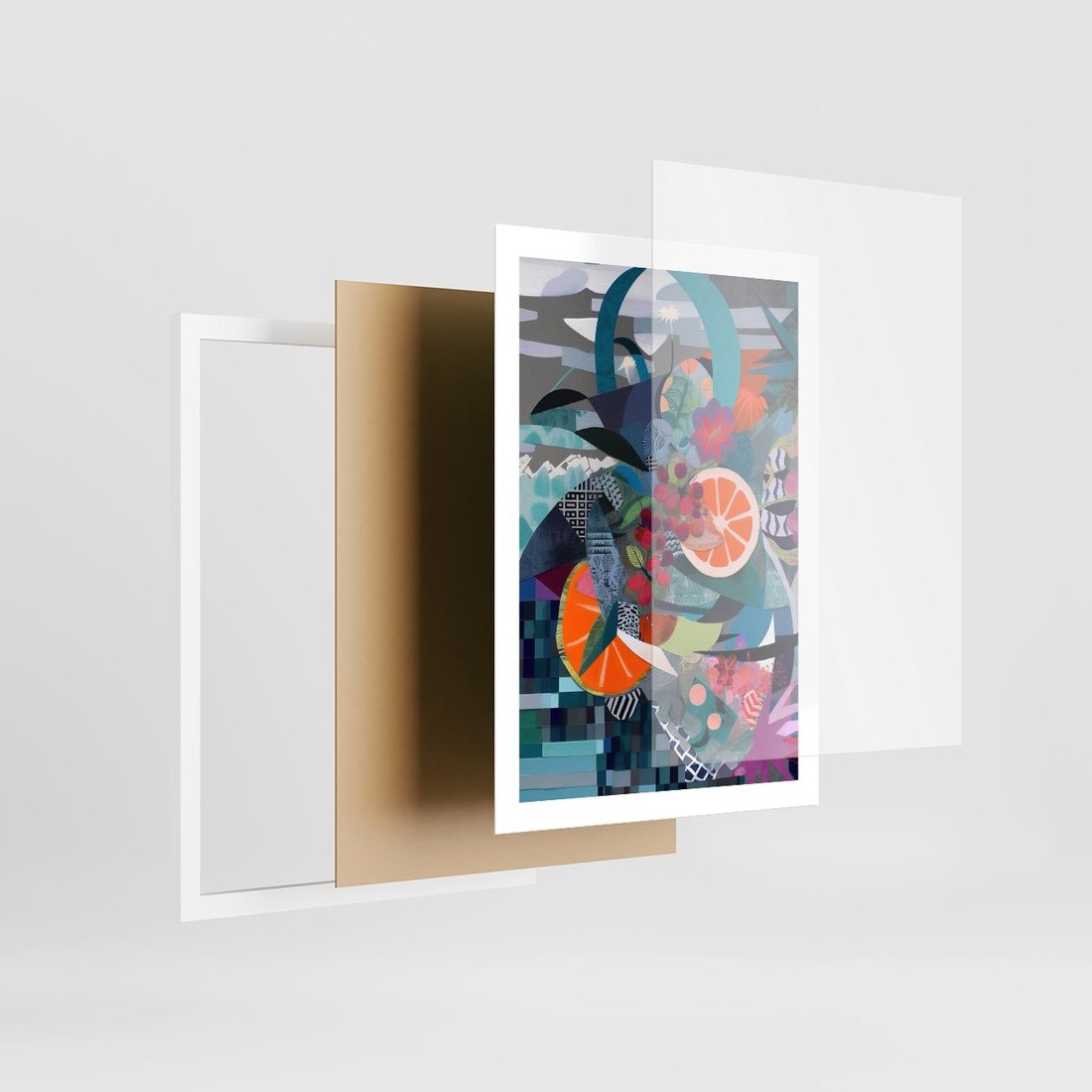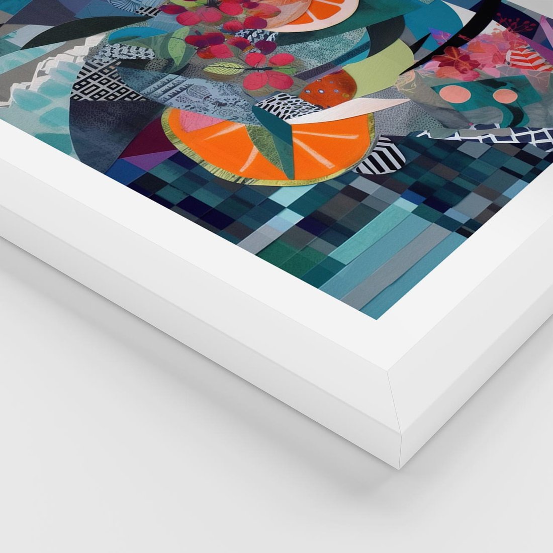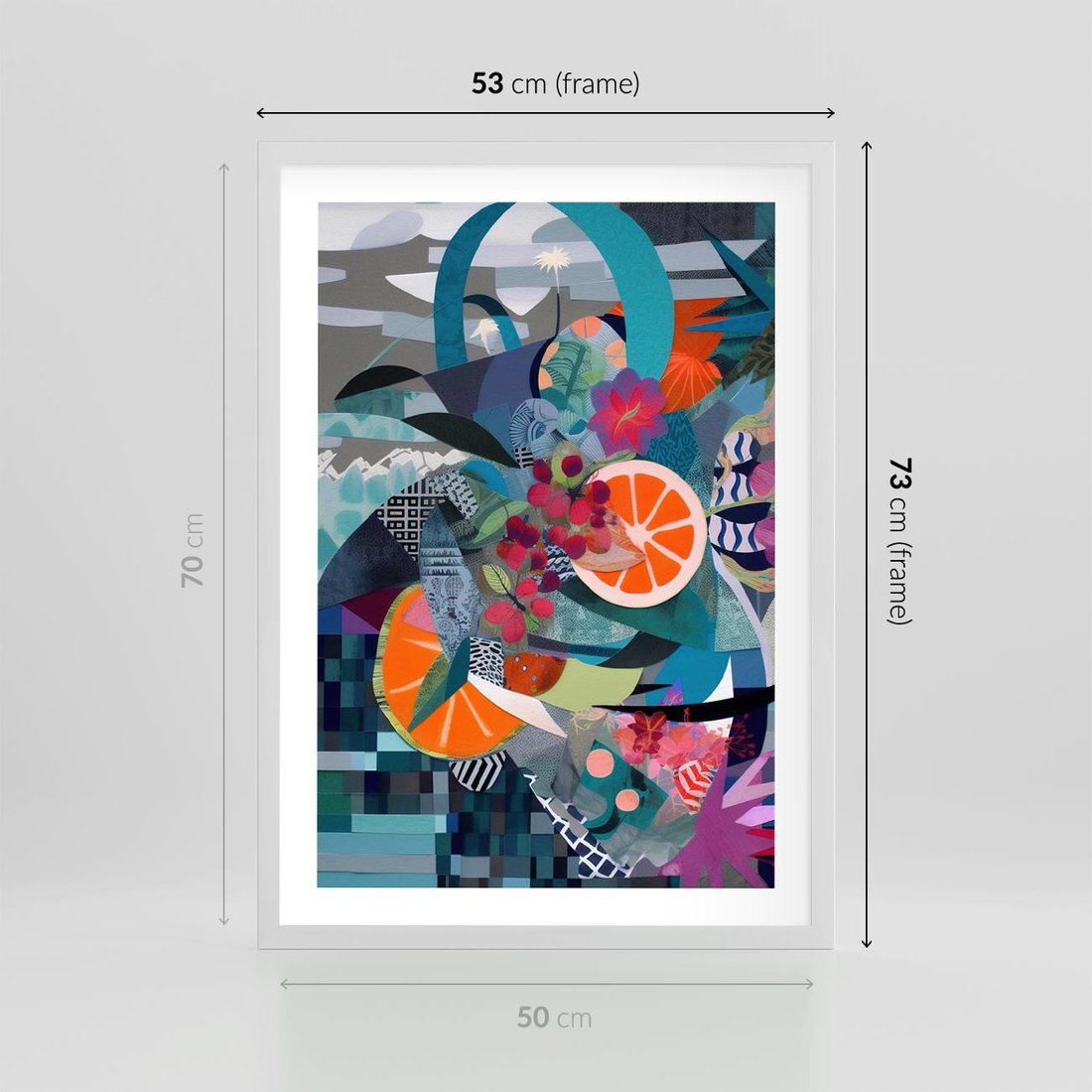 Plakat w ramie 50x70 - Migocące Widoki Harmonii - abstrakcyjny obraz, jak picasso - rama biała