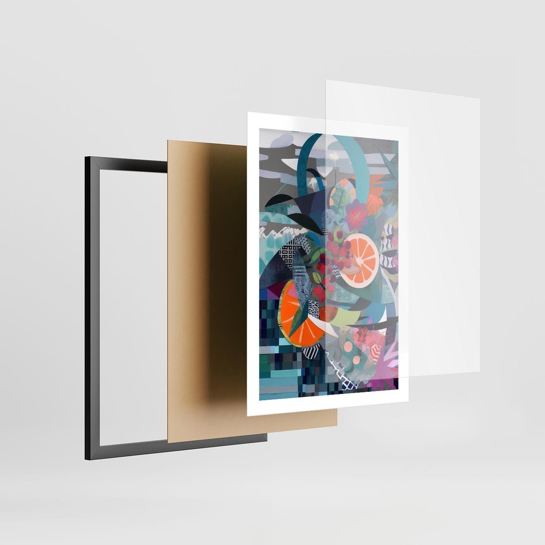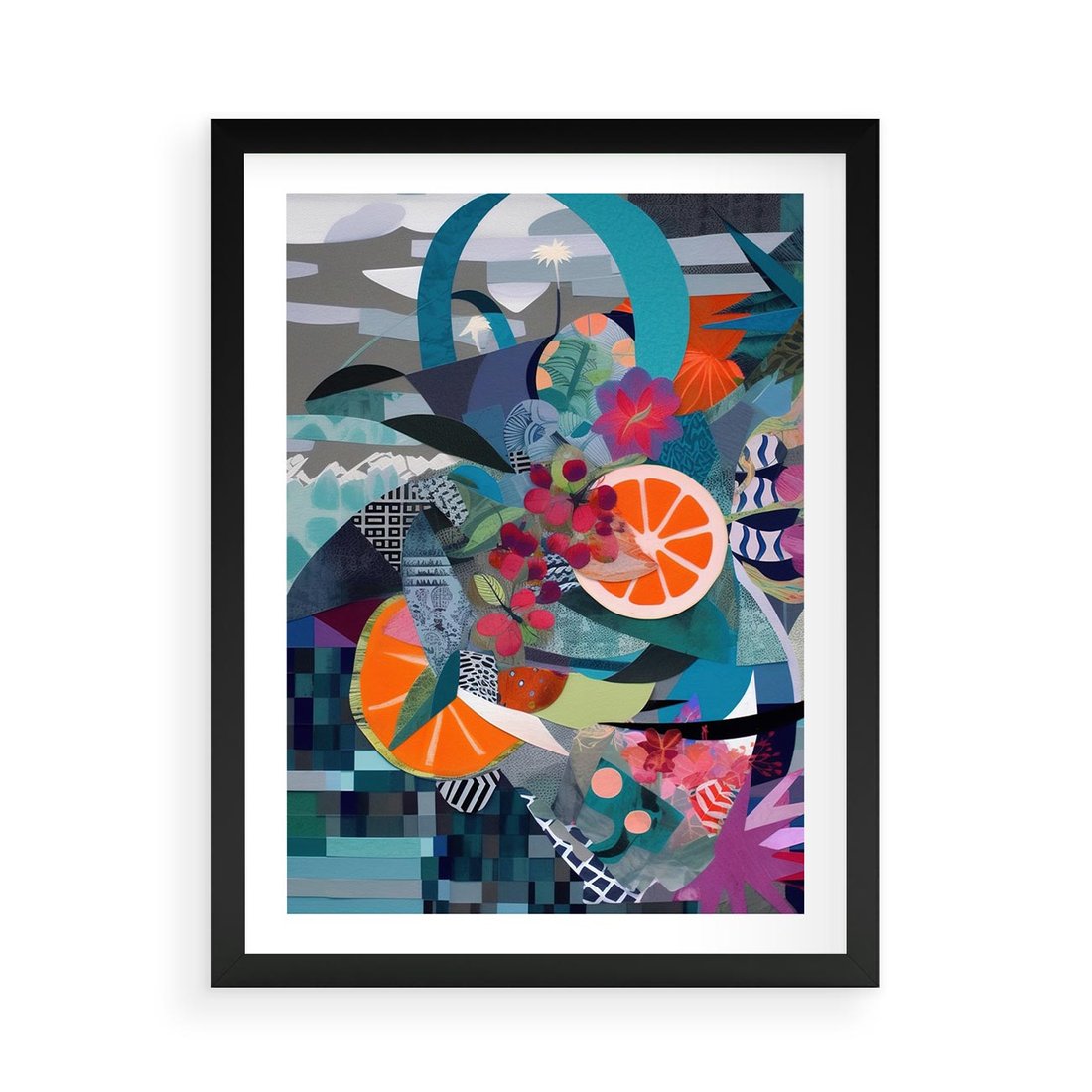 Plakat w ramie 50x70 - Migocące Widoki Harmonii - abstrakcyjny obraz, jak picasso - rama czarna