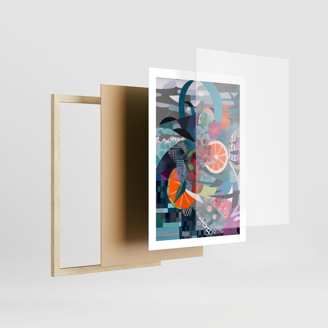 Plakat w ramie 50x70 - Migocące Widoki Harmonii - abstrakcyjny obraz, jak picasso - rama drewno