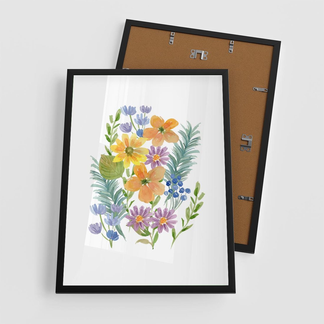 Plakat w ramie 50x70 - Migocące Widoki Kwiatów - akwarelowe polne kwiaty, minimalistyczny plakat - rama czarna