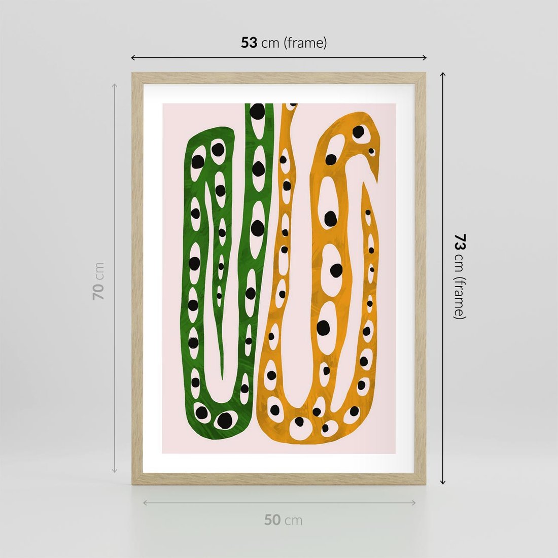 Plakat w ramie 50x70 - Migocące Zmaganie - abstrakcyjny obraz, dziwne kształty - rama drewno