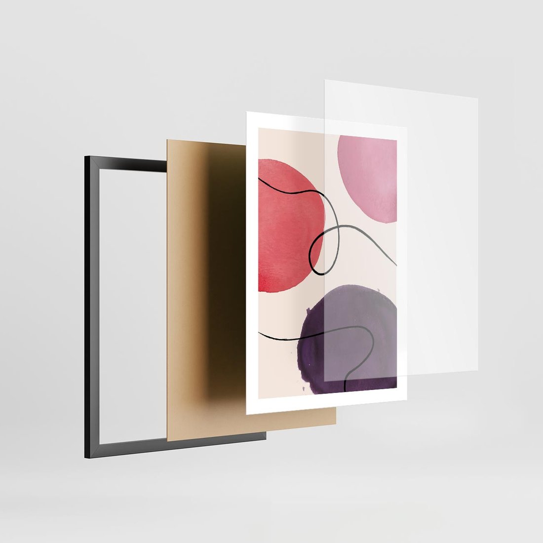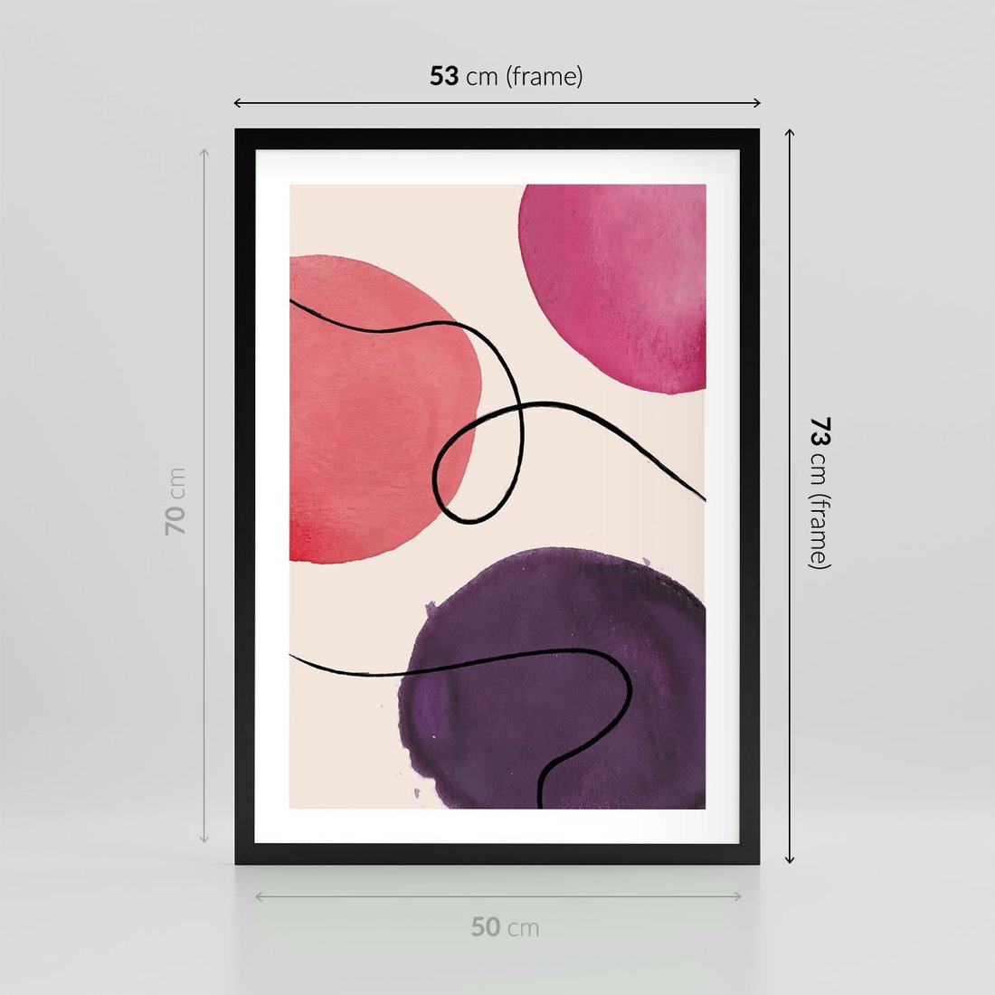 Plakat w ramie 50x70 - Migoczące Echo - abstrakcyjne akwarelowe plamy, nieregularne linie - rama czarna