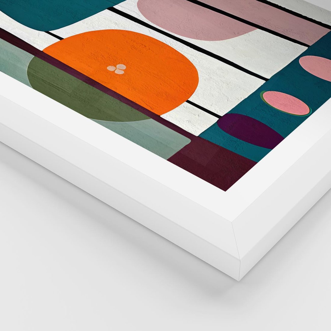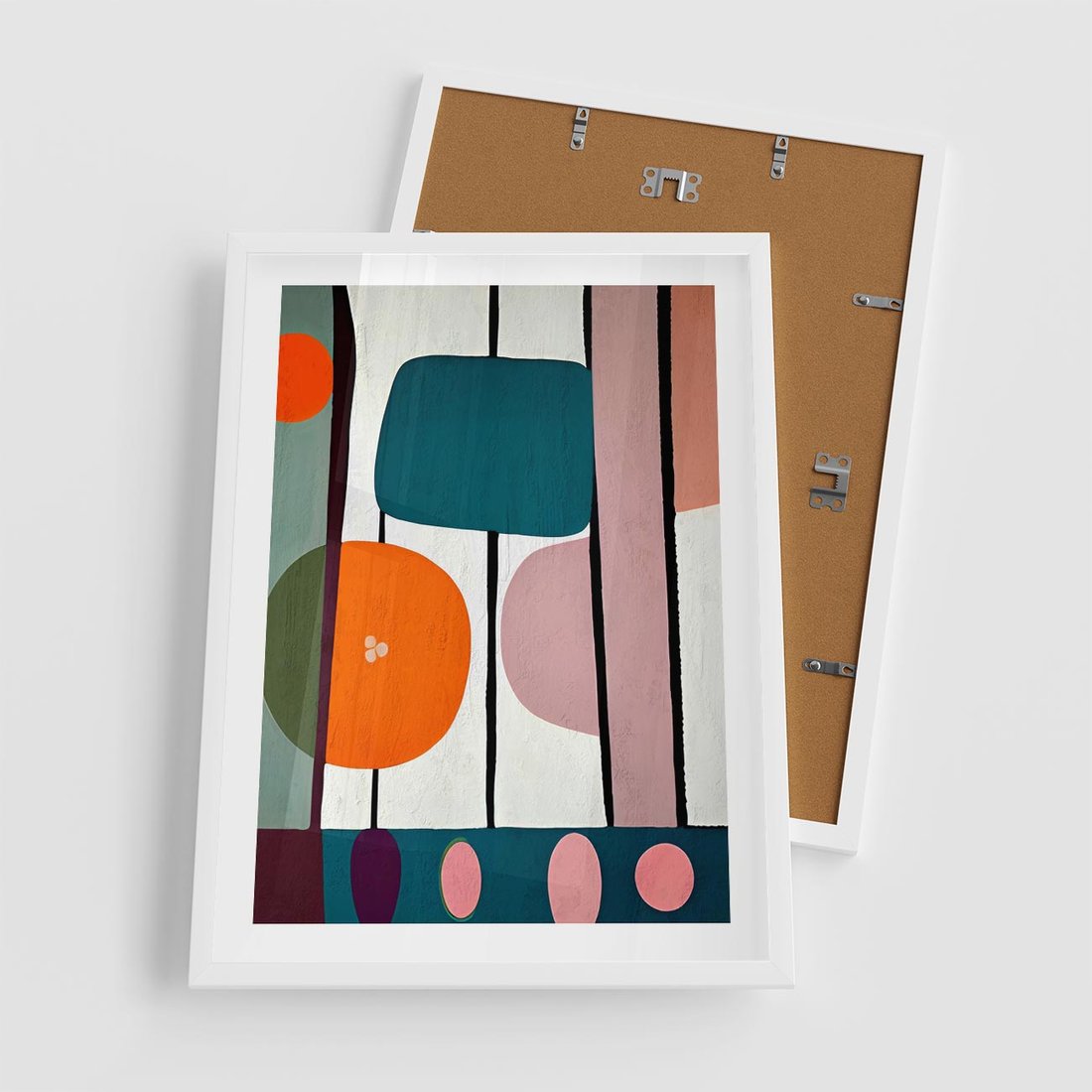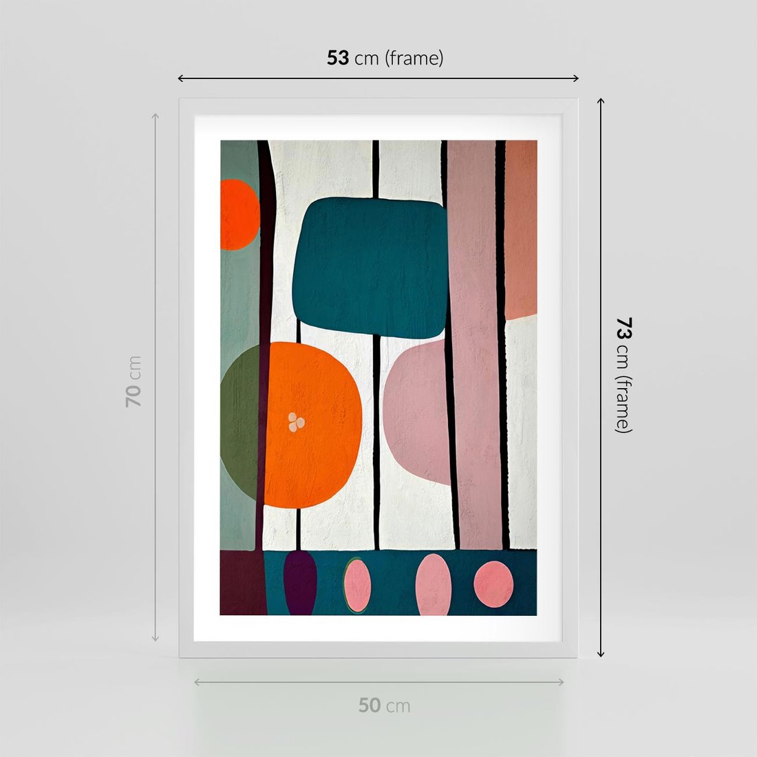 Plakat w ramie 50x70 - Migotliwa Aura Serca - abstrakcyjny obraz olejny, dziwne formy - rama biała
