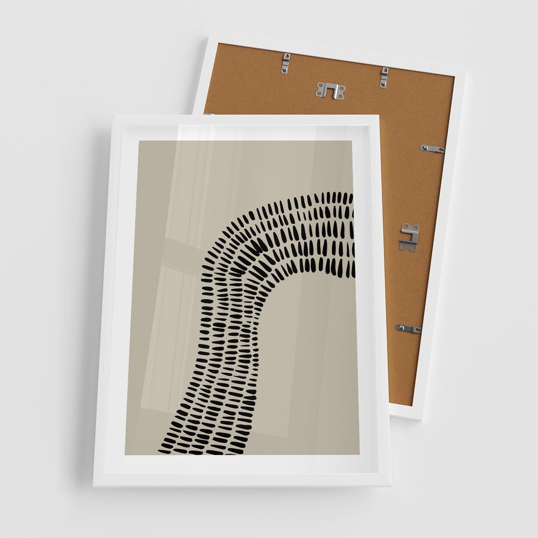 Ten boho plakat jest wyjątkowym połączeniem czarnych kropek i kresek na spokojnym beżowym tle. To dzieło sztuki emanuje stylem boho, jednocześnie wprowadzając subtelny element abstrakcji. Idealny wybór, jeśli chcesz dodać charakteru i wyjątkowości do swojej przestrzeni, zachowując jednocześnie spokojny klimat.