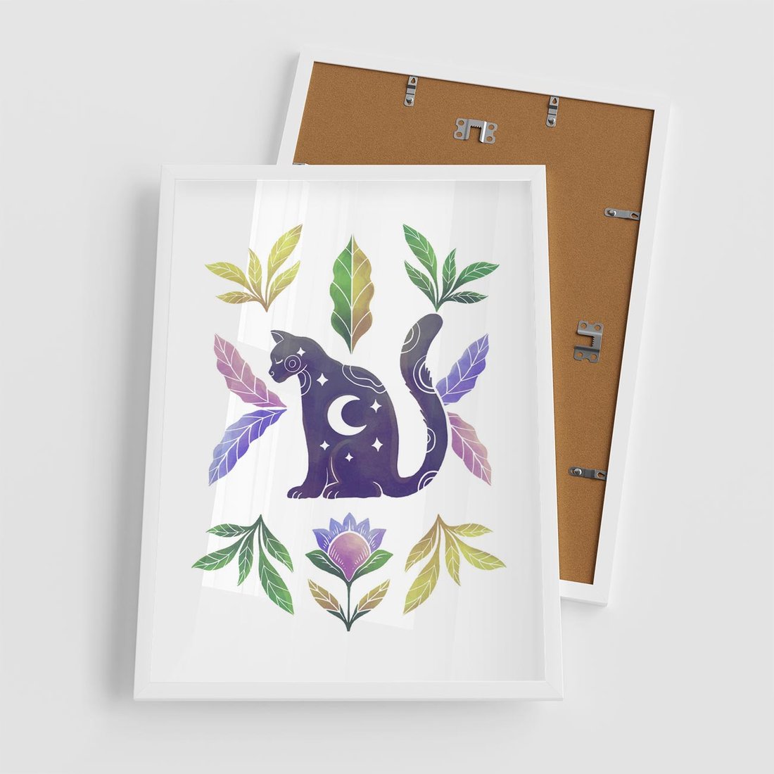 Plakat w ramie 50x70 - Migotliwa Przestrzeń - boho kot, plakat - rama biała