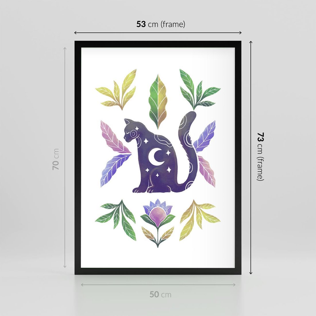 Plakat w ramie 50x70 - Migotliwa Przestrzeń - boho kot, plakat - rama czarna