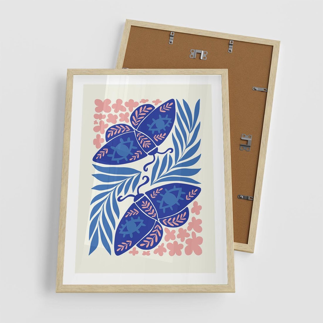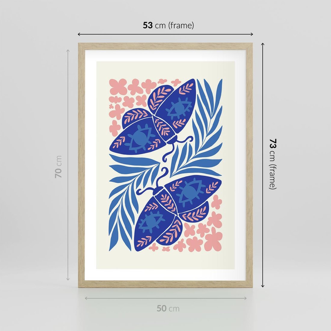 Plakat w ramie 50x70 - Migotliwa Rzeczywistość - ćmy, kwiaty - rama drewno