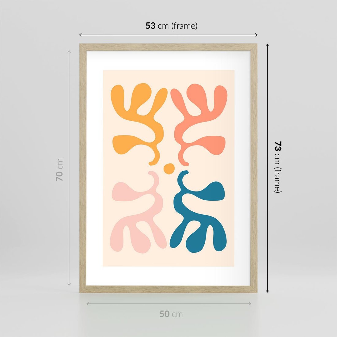 Plakat w ramie 50x70 - Migotliwe Akwarelowe Kontury - absrakcyjne dziwne formy, nowoczesny plakat - rama drewno