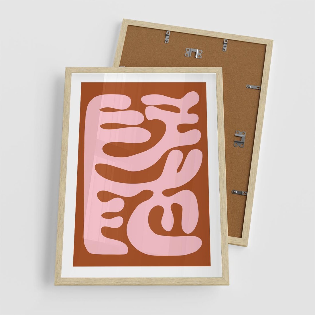 Ten boho plakat prezentuje abstrakcyjny obraz z dziwnymi kształtami na pięknym brązowym tle. Kompozycja łączy w sobie nutę nowoczesności i wyrafinowanego stylu boho, dodając uroku i charakteru do Twojej przestrzeni.