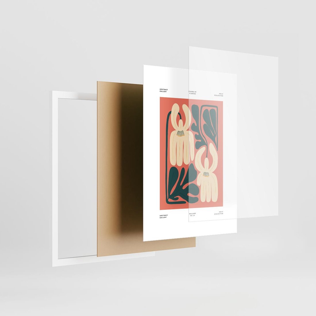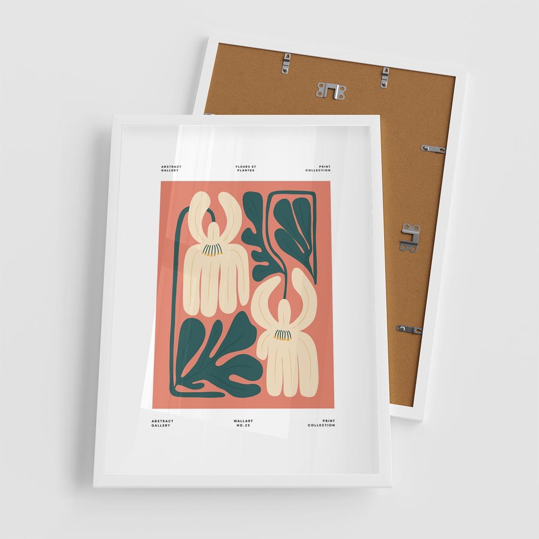 Ten plakat w nowoczesnej abstrakcji ukazuje delikatność kwiatów, wzbogaconą subtelna typografią. Kompozycja emanuje pięknem i wyrafinowanym stylem, tworząc wyjątkową przestrzeń estetycznych doznań.
