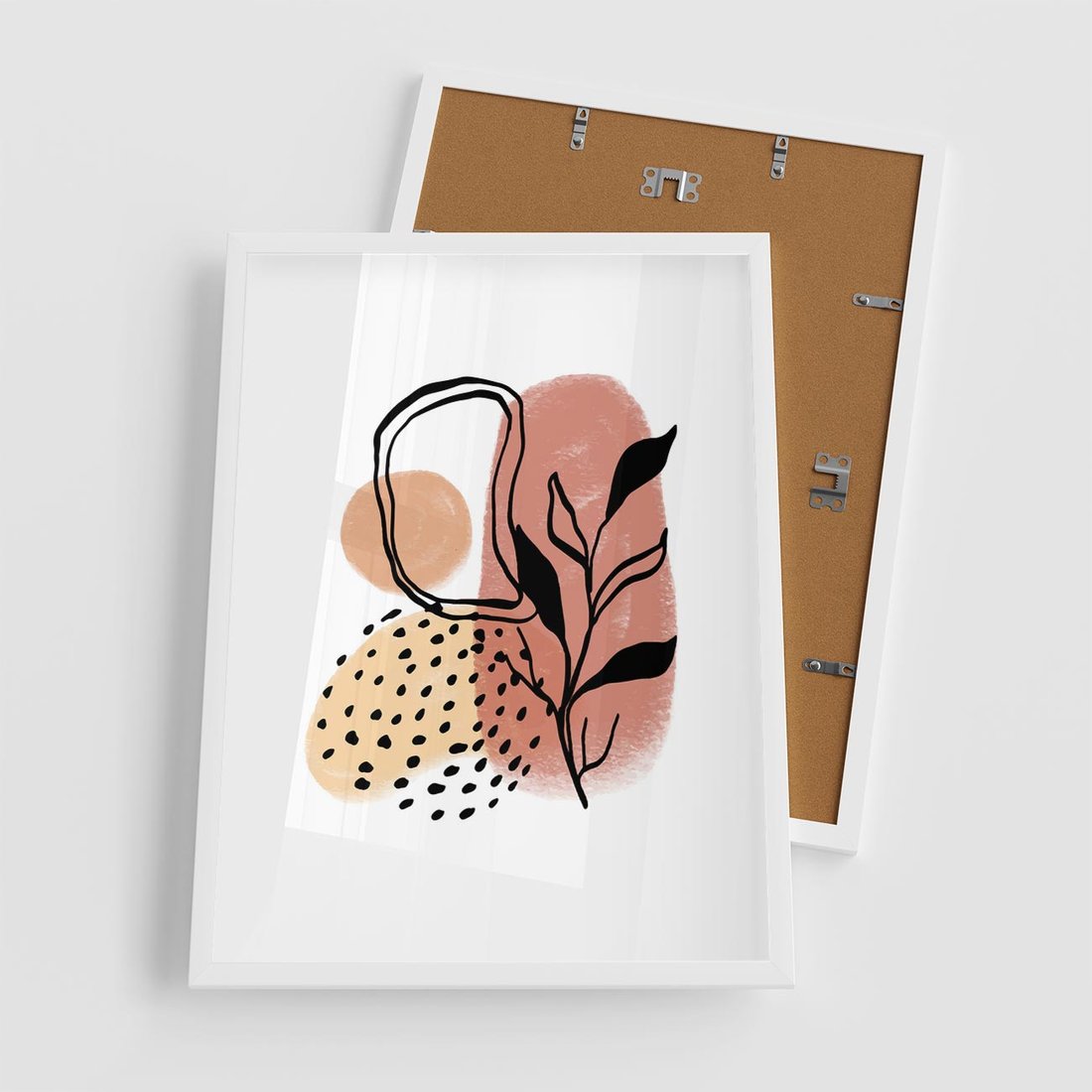 Nasz plakat to abstrakcyjne połączenie elementów roślinnych w czarnym szkicu, ozdobione akwarelowymi plamami. To artystyczne dzieło wprowadza do Twojej przestrzeni dynamiczną energię i wyrazistą estetykę sztuki nowoczesnej, zachwycając wyjątkowym połączeniem różnych technik i stylów.