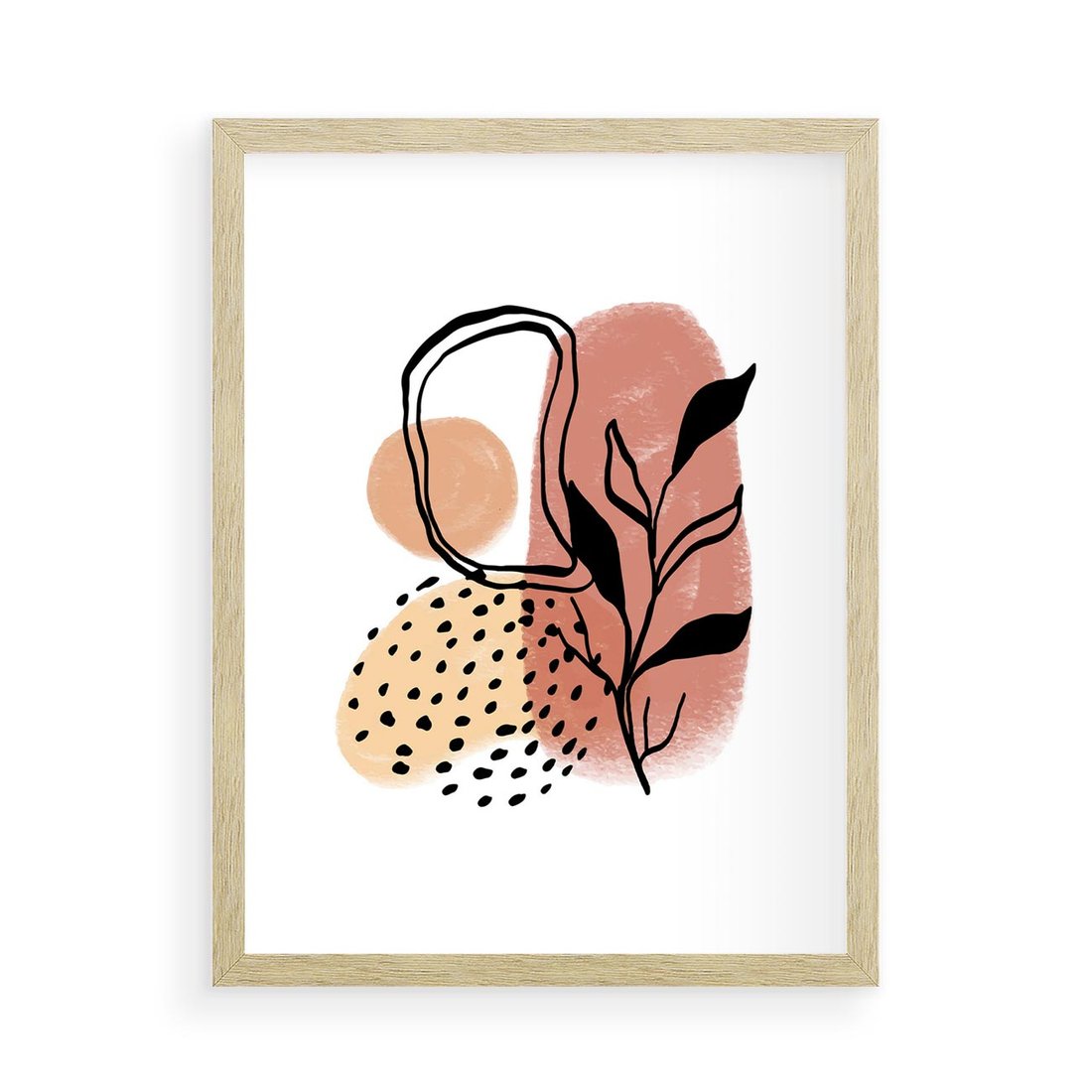 Nasz plakat to abstrakcyjne połączenie elementów roślinnych w czarnym szkicu, ozdobione akwarelowymi plamami. To artystyczne dzieło wprowadza do Twojej przestrzeni dynamiczną energię i wyrazistą estetykę sztuki nowoczesnej, zachwycając wyjątkowym połączeniem różnych technik i stylów.