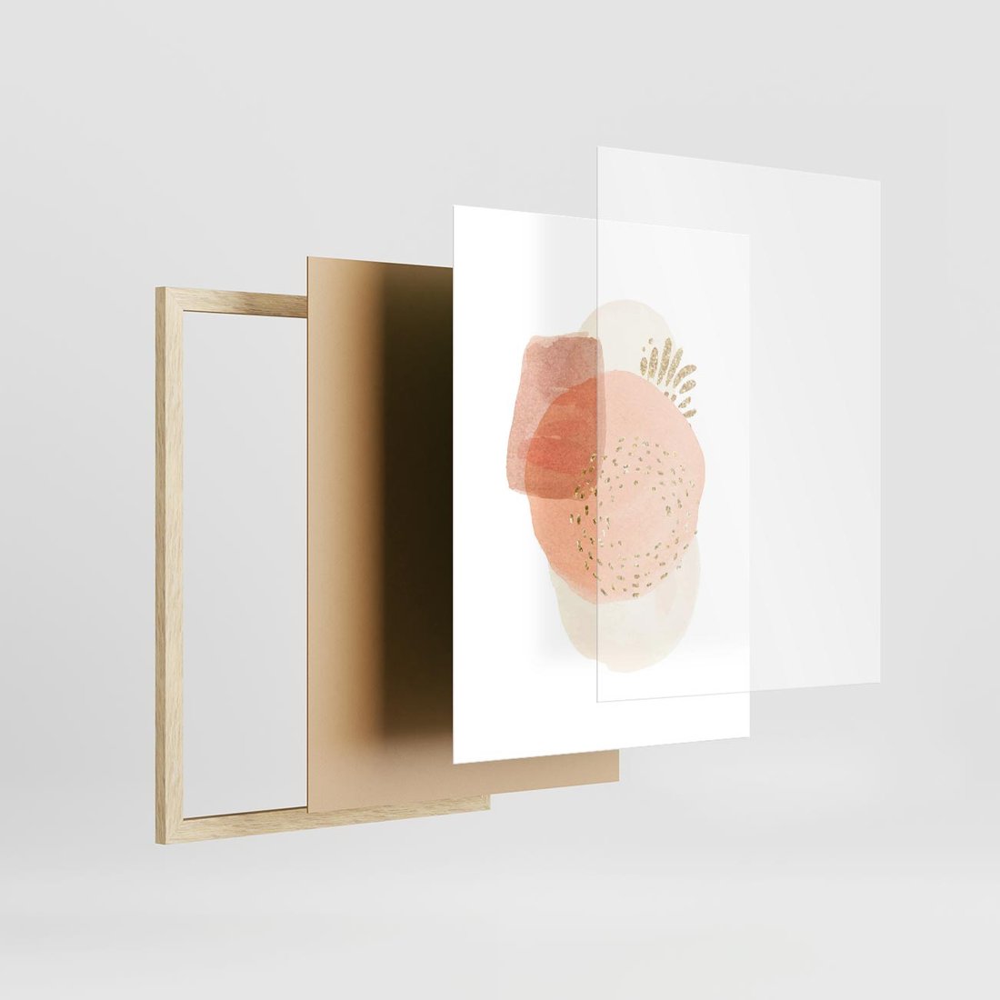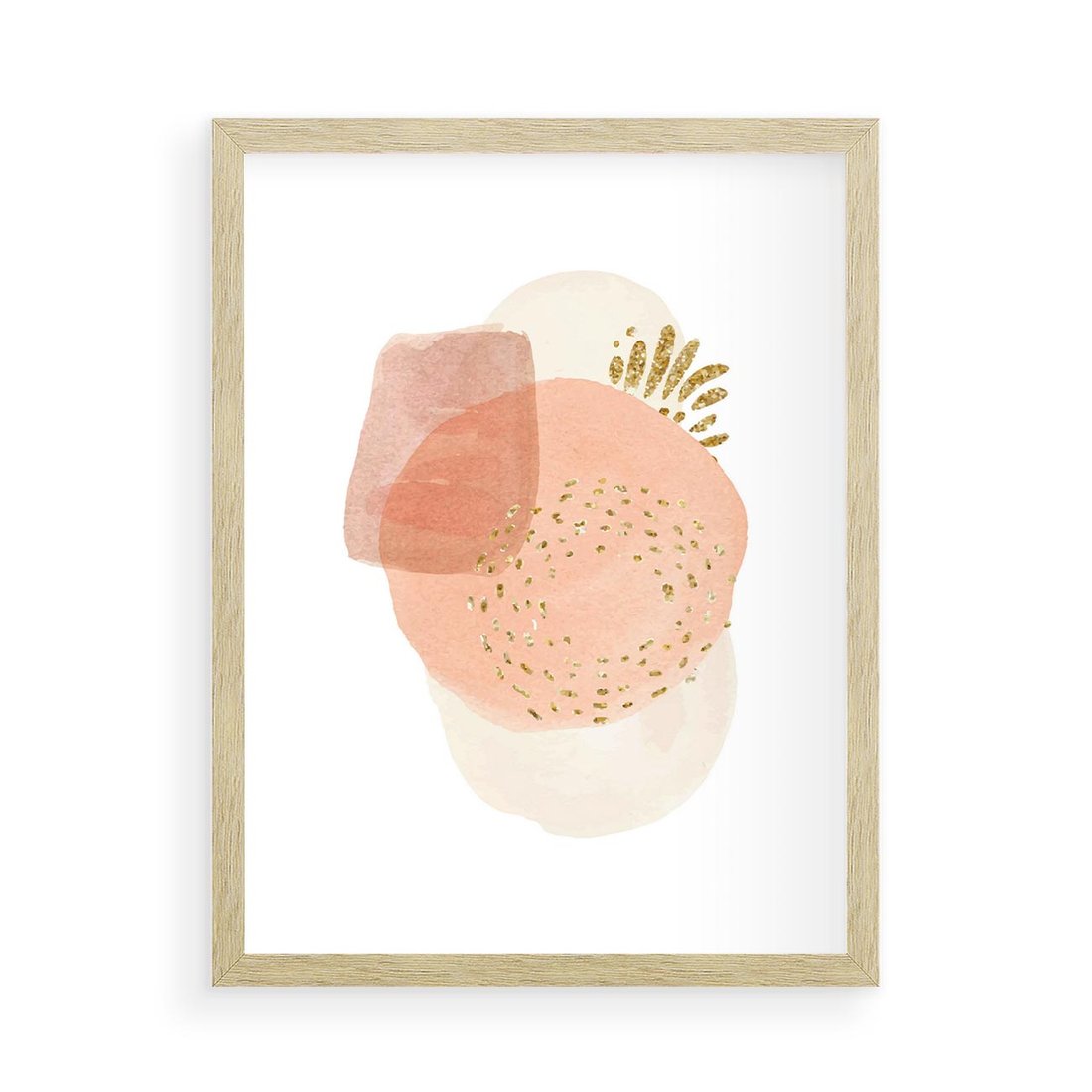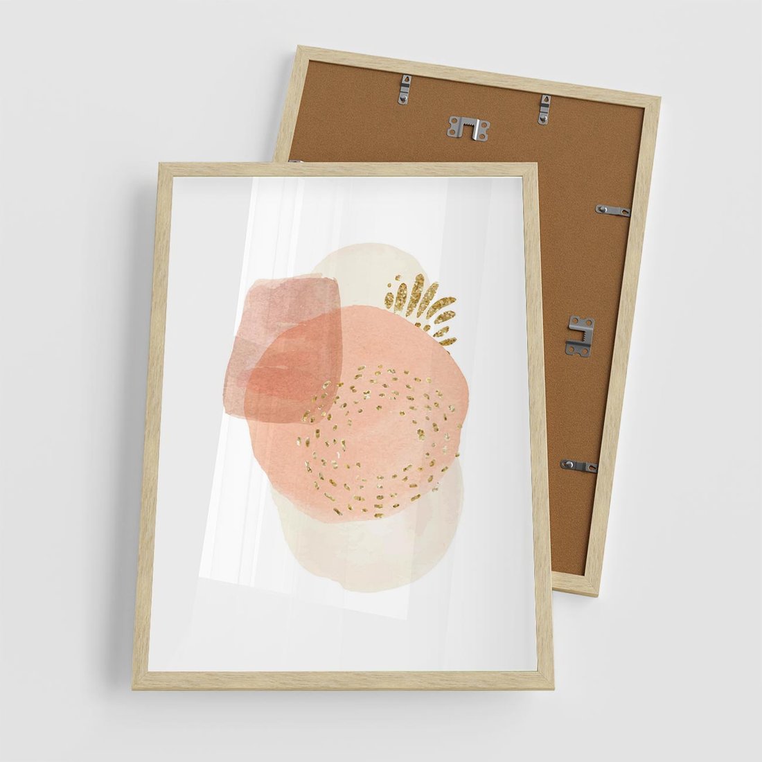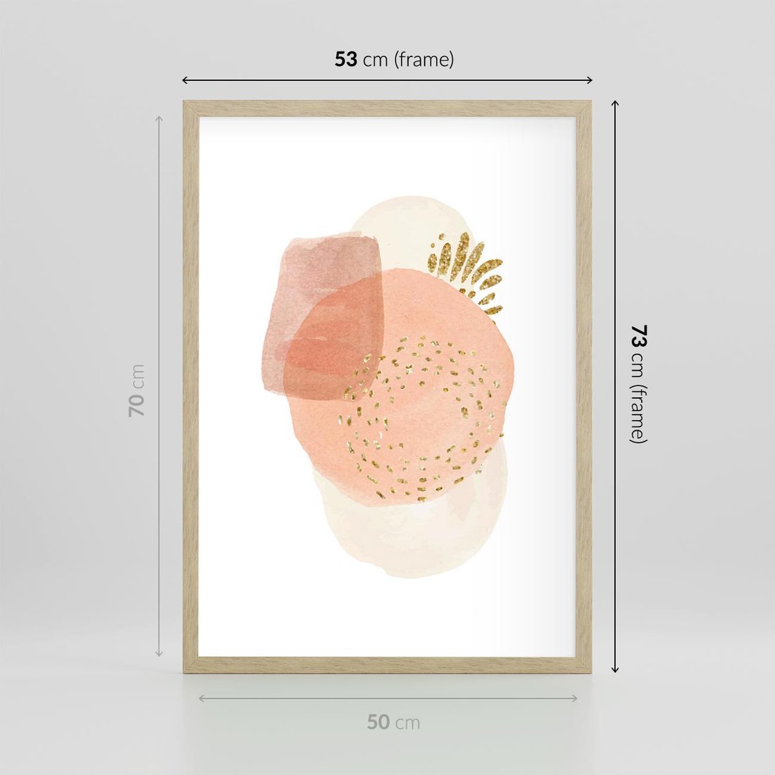 Plakat w ramie 50x70 - Migotliwe Kształty i Plamy - abstrakcyjne akwarelowe plamy, minimalizm - rama drewno