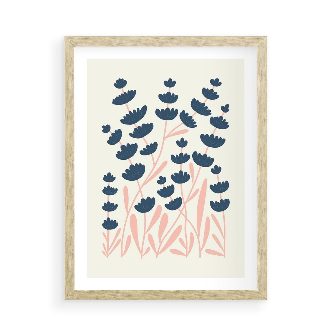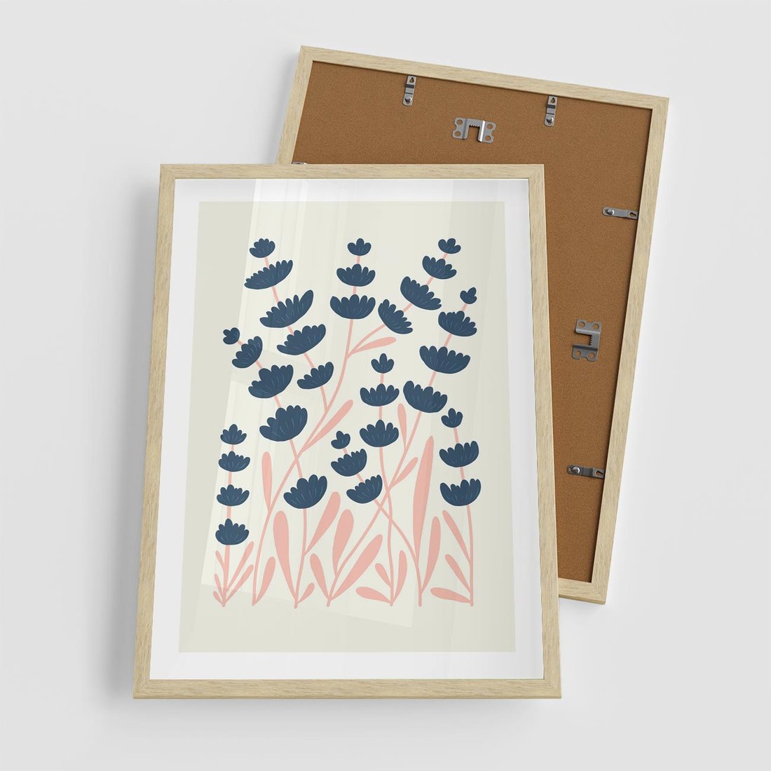 Ten minimalistyczny plakat przedstawia kwiaty i rośliny w delikatnych pastelowych kolorach, tworząc spokojny i urokliwy obraz. Sztuka ta wprowadza harmonię natury do przestrzeni, inspirując do wewnętrznej równowagi.