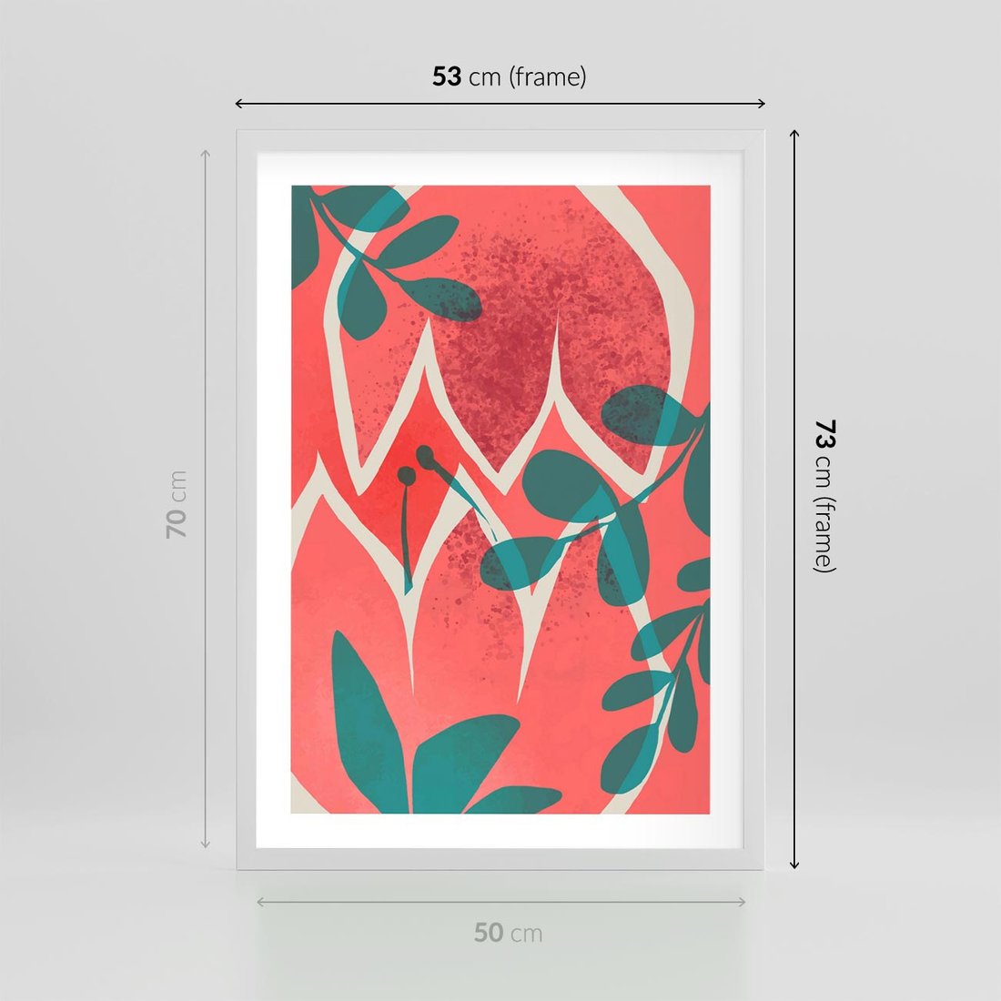 Plakat w ramie 50x70 - Migotliwe Kształty Plam - nowoczesny plakat, abstrakcyjne kwiaty - rama biała