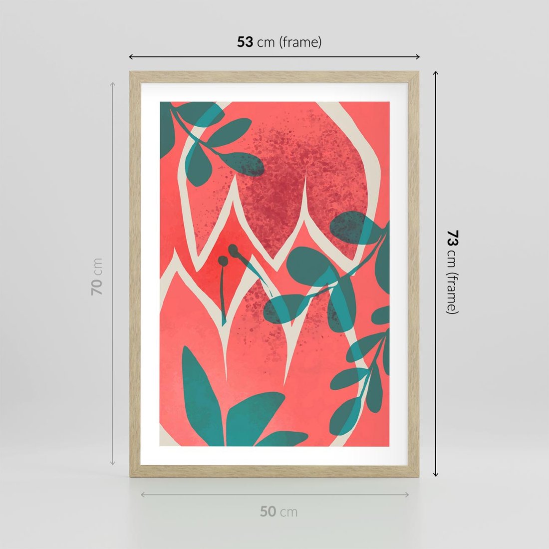 Plakat w ramie 50x70 - Migotliwe Kształty Plam - nowoczesny plakat, abstrakcyjne kwiaty - rama drewno