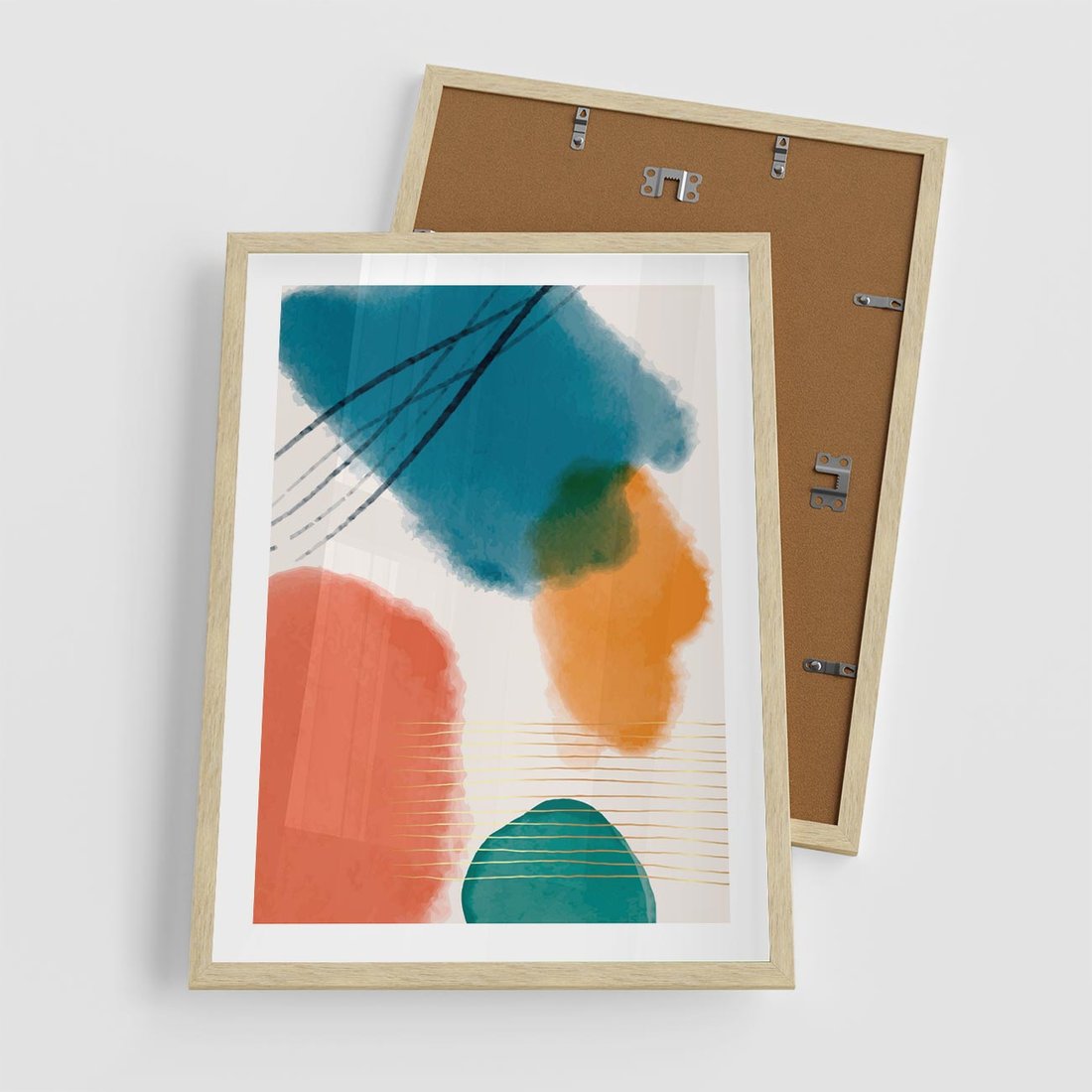 Plakat w ramie 50x70 - Migotliwe Pochwycenia - abstrakcyjne kolorowe plamy, akwarela - rama drewno
