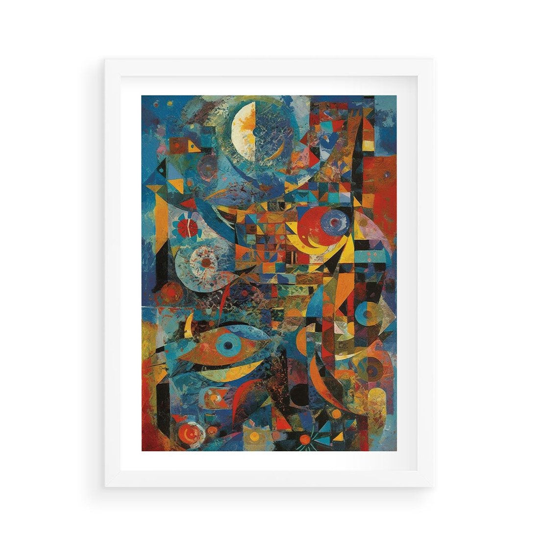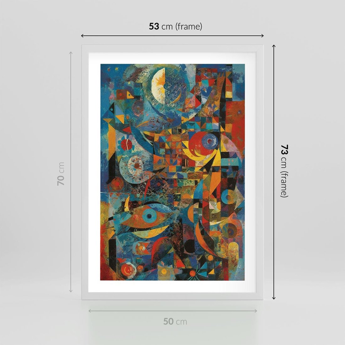 Plakat w ramie 50x70 - Migotliwe Przesunięcia Konturów - abstrakcyjny obraz, sztuka abstrakcji - rama biała