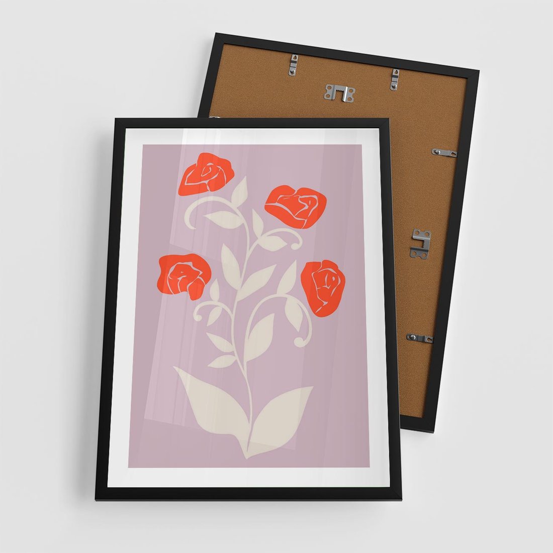Ten nowoczesny plakat prezentuje energetyczne, pomarańczowe kwiaty z roślinnymi motywami. To dzieło sztuki wniesie do Twojej przestrzeni radość i wyrazistość, tworząc jednocześnie interesujący akcent artystyczny. Idealnie nadaje się do nowoczesnych wnętrz, które potrzebują odrobinę naturalnego uroku.