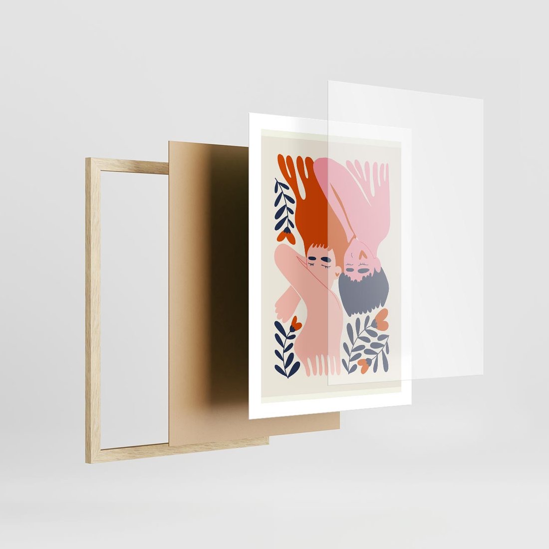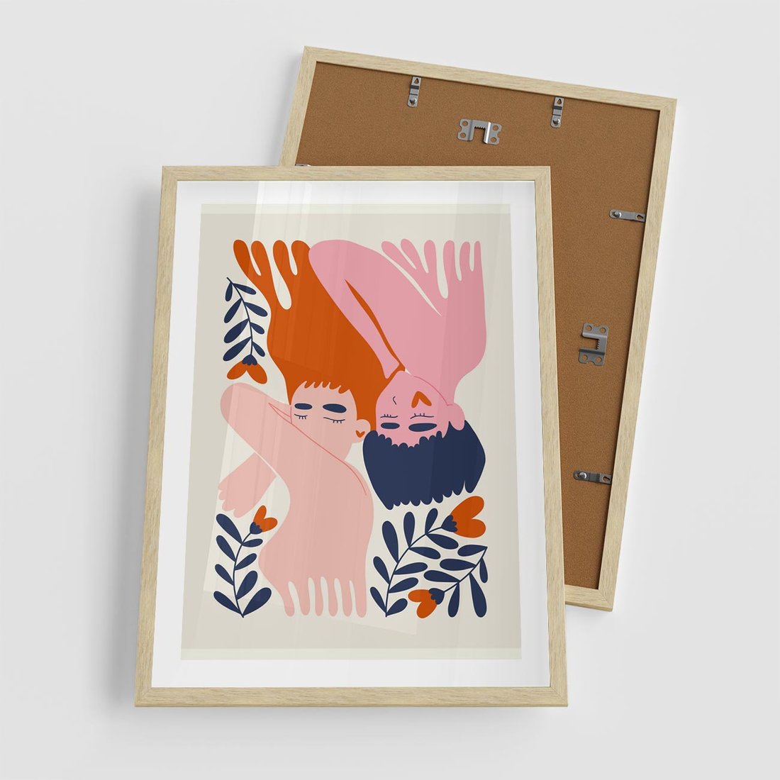 Ta nowoczesna grafika przedstawiająca parę zakochanych kobiet oddaje piękno miłości. "Miłość w Dwóch Sercach" to wyjątkowe spojrzenie na uczucie, które pokazuje, że miłość jest piękna bez względu na różnice. Obraz ten wprowadzi do wnętrza subtelny akcent emocji, jednocześnie zachowując nowoczesny styl graficzny.