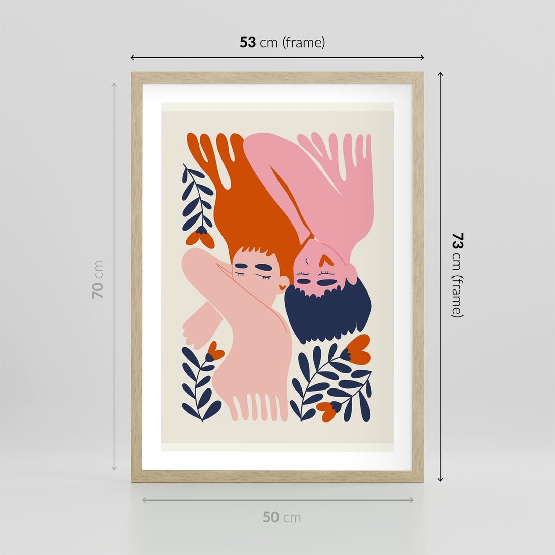 Plakat w ramie 50x70 - Miłość w Dwóch Sercach - miłość, para zakochanych - rama drewno