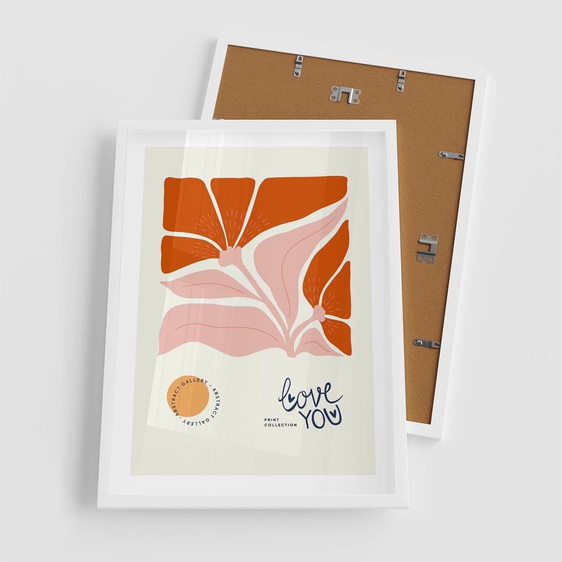 Ta nowoczesna grafika łączy kwiaty, miłość i typografię w delikatnych pastelowych odcieniach różu i pomarańczy. "Miłość w Kwiatowym Sercu" to artystyczne wyrażenie uczucia, które tworzy harmonijną kompozycję. Ten obraz doskonale wprowadzi romantyczną atmosferę do wnętrza, przynosząc równocześnie nowoczesną estetykę i ciepło uczucia.
