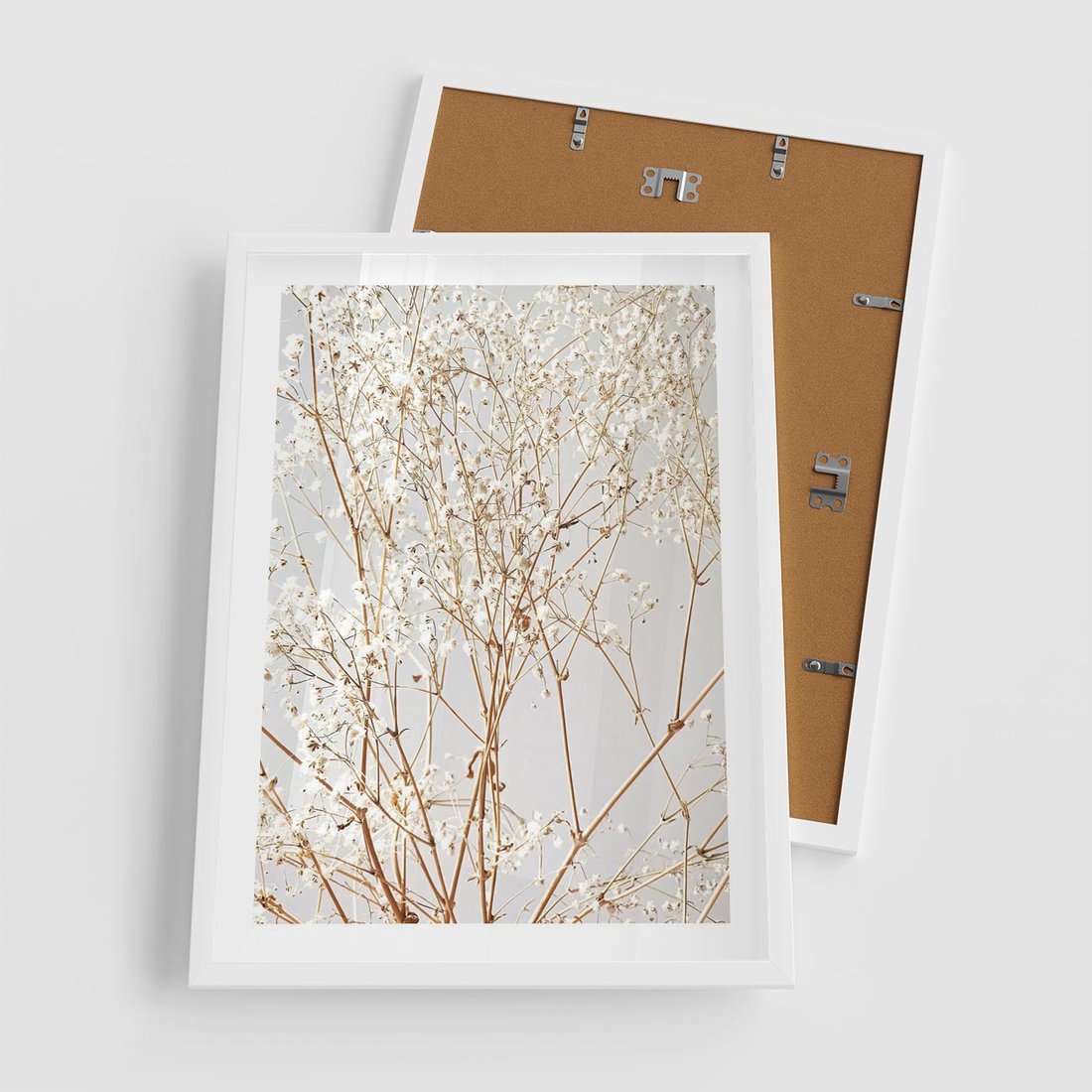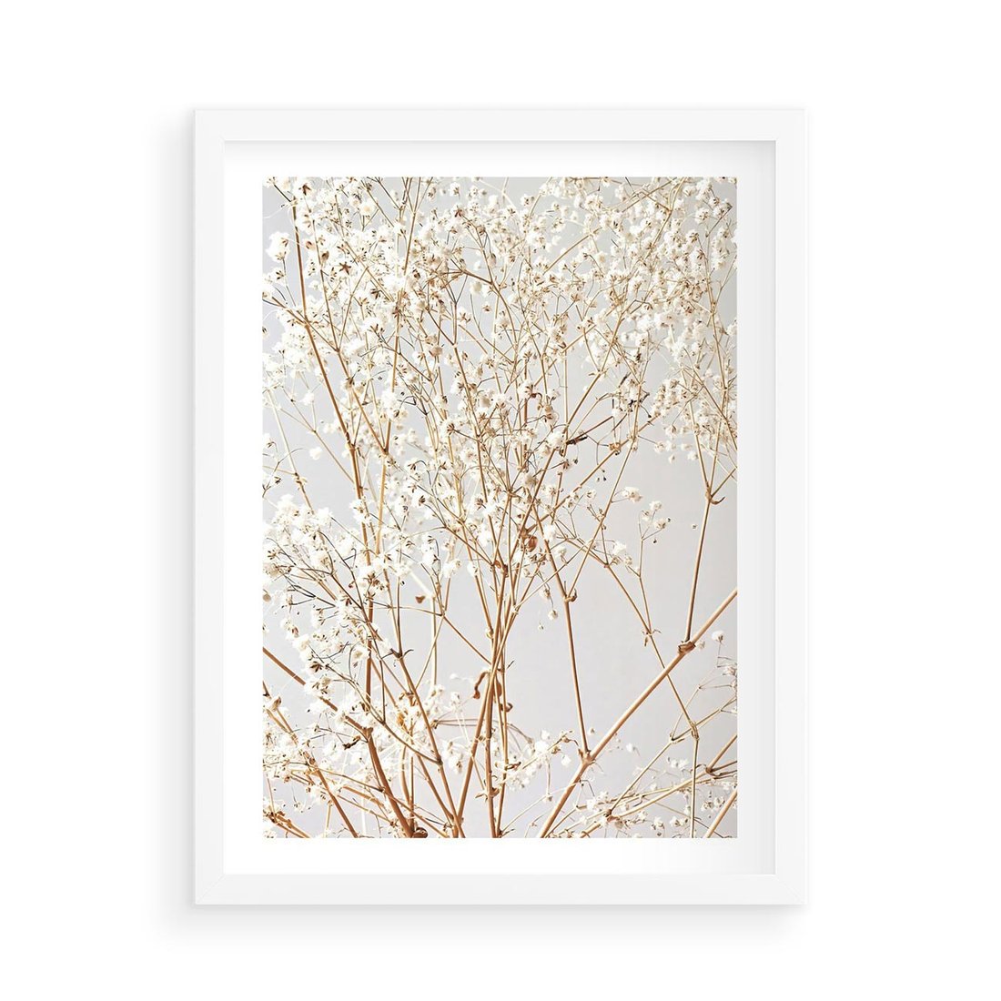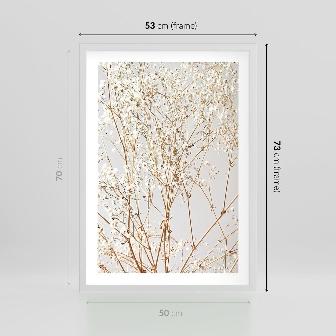 Plakat w ramie 50x70 - Minimalistyczna Delikatność - białe kwiaty, gipsówka - rama biała