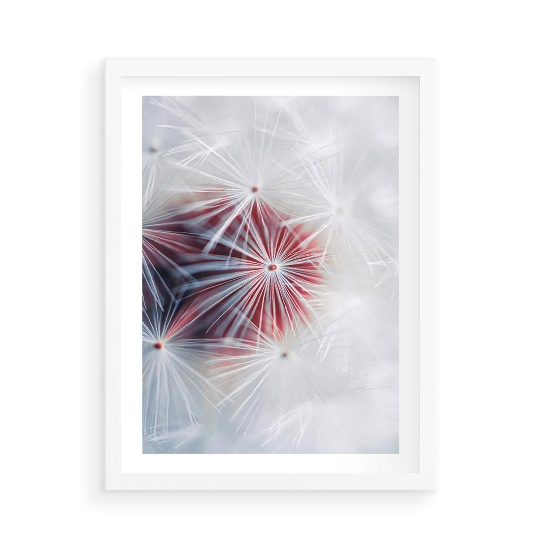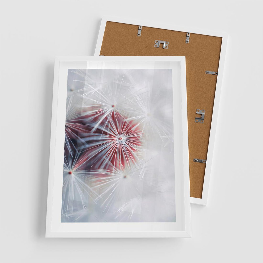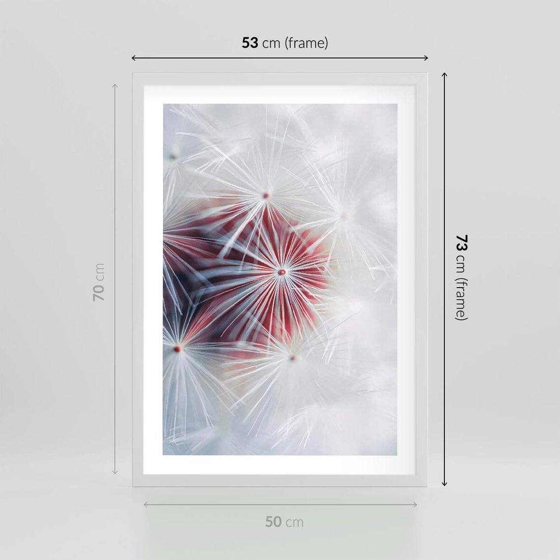 Plakat w ramie 50x70 - Minimalistyczna Delikatność - zbliżenie, dmuchawce - rama biała