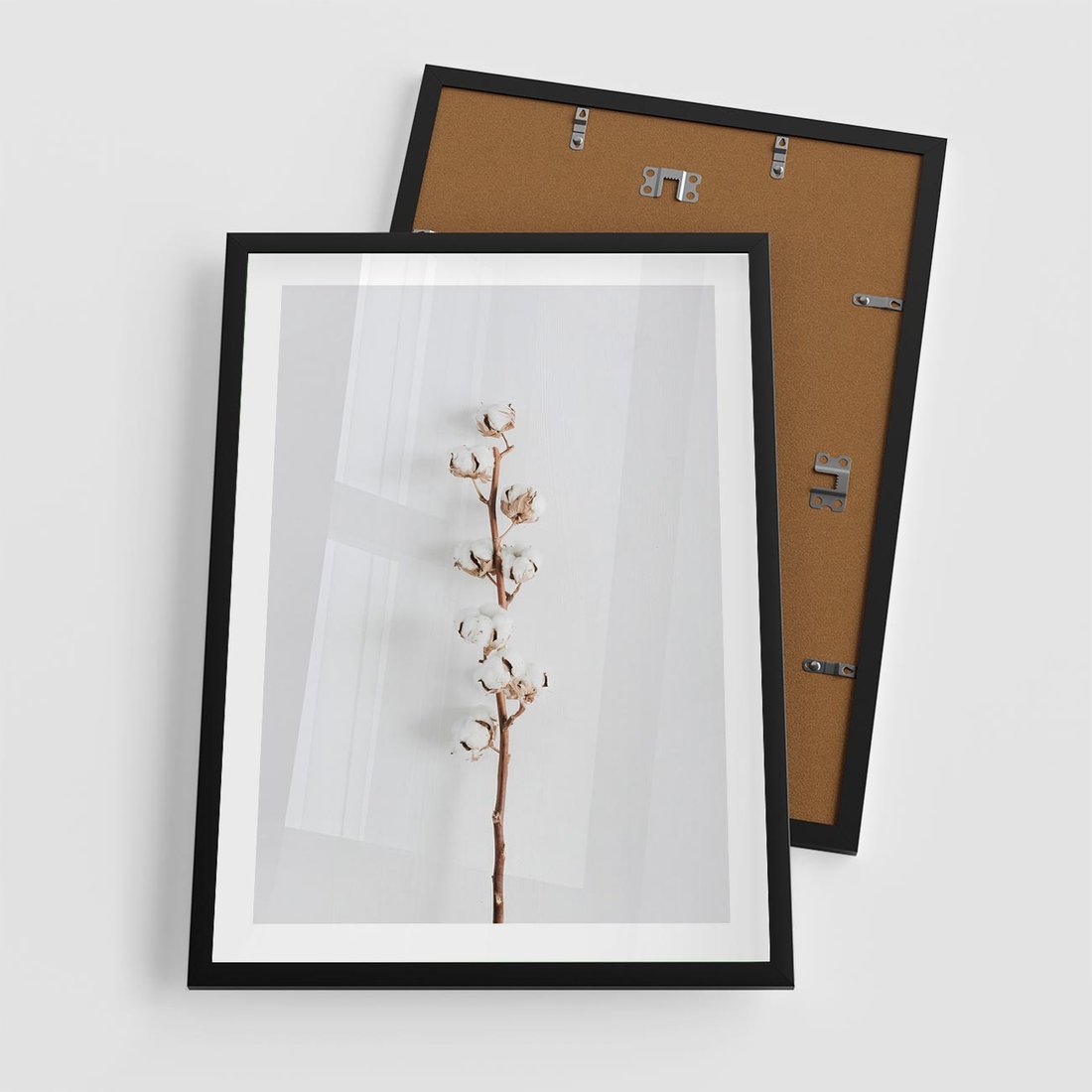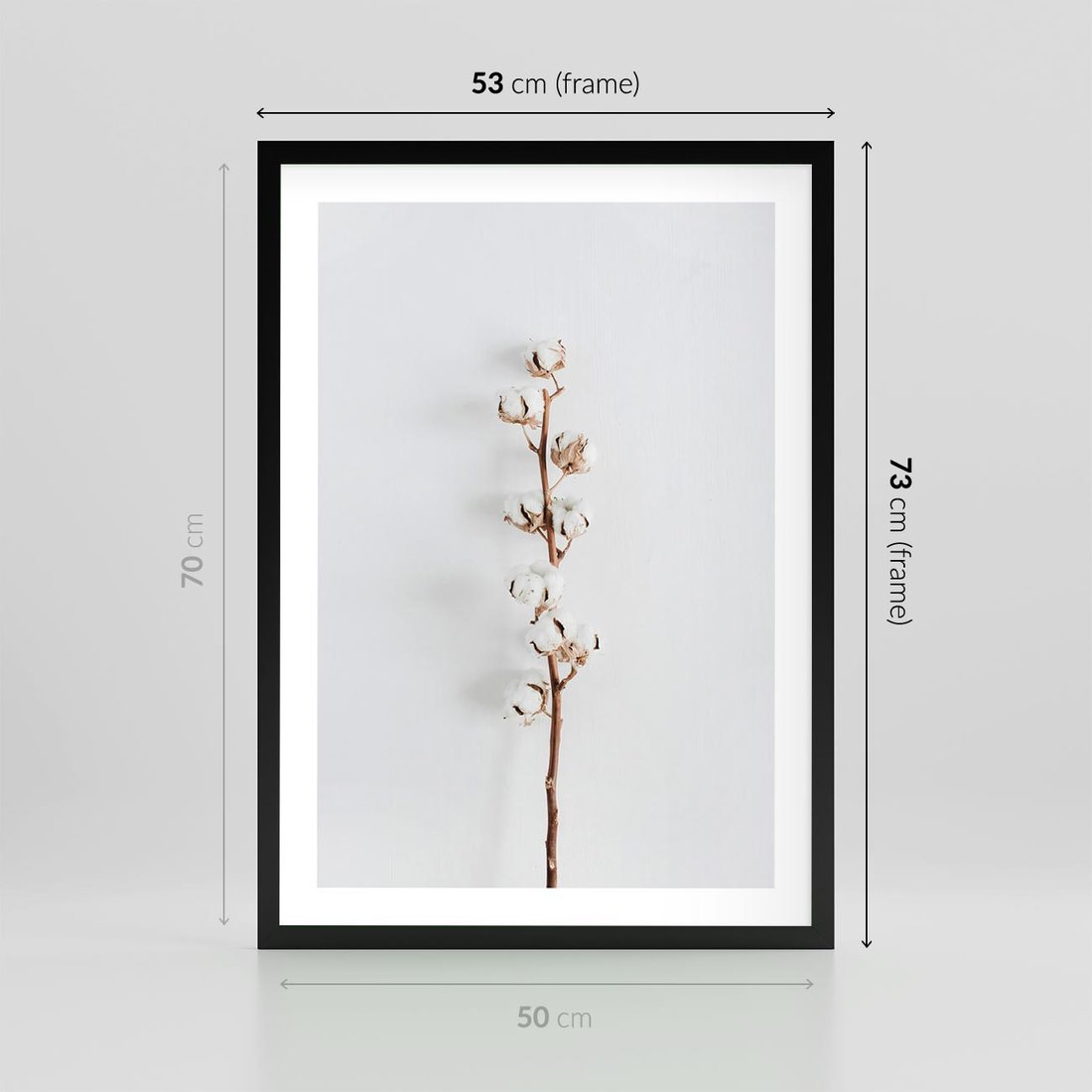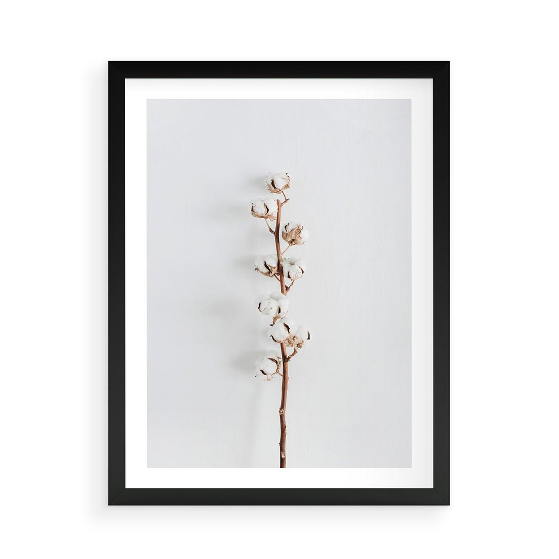 Plakat w ramie 50x70 - Minimalistyczna Gałązka Bawełny - bawełna, gałązka bawełny - rama czarna