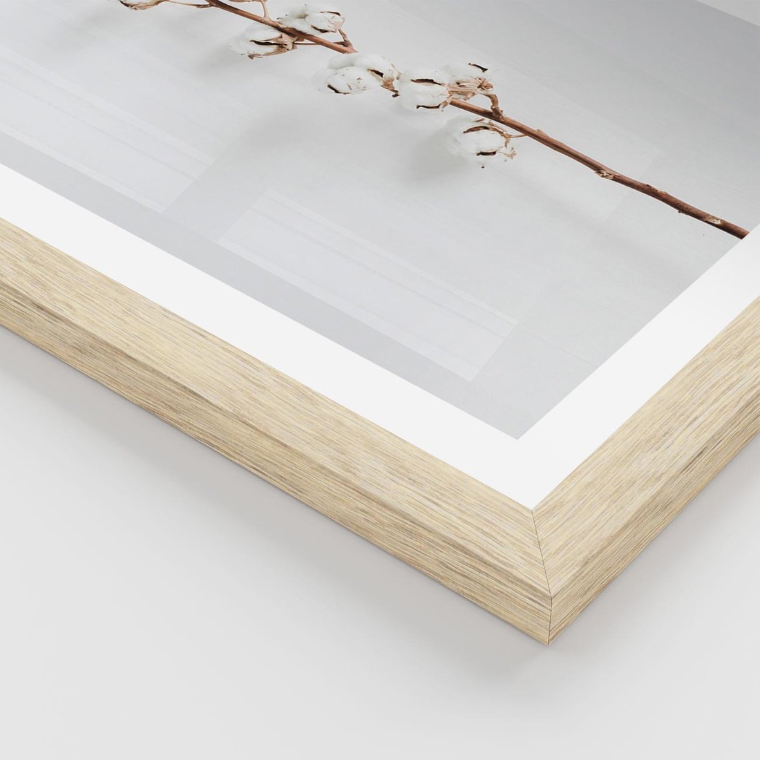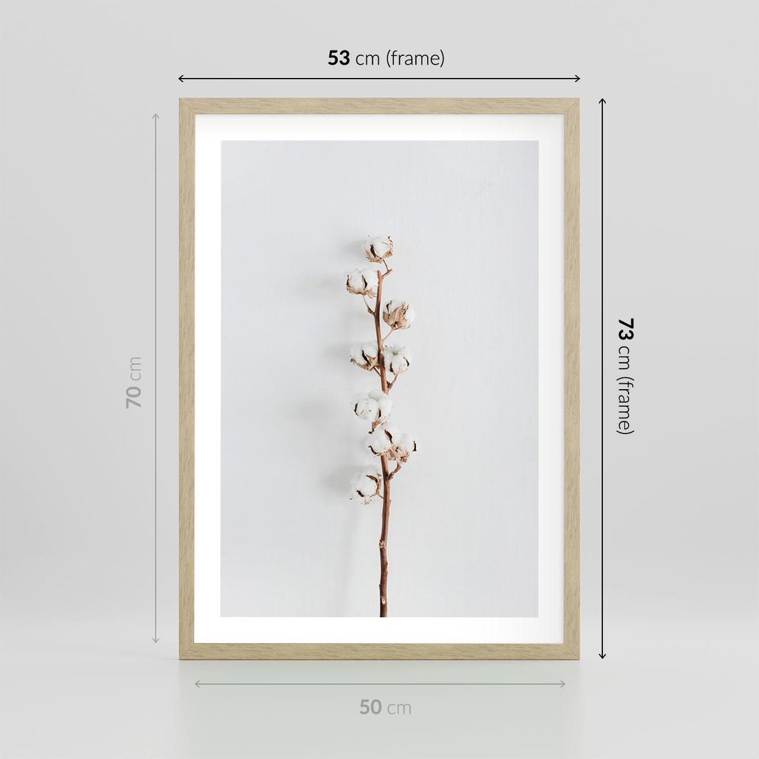Plakat w ramie 50x70 - Minimalistyczna Gałązka Bawełny - bawełna, gałązka bawełny - rama drewno