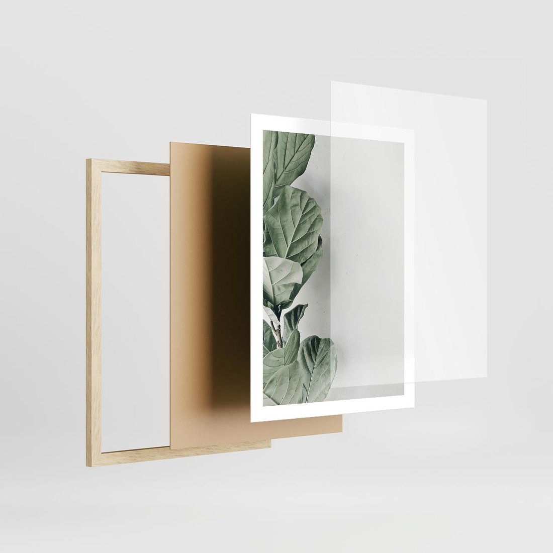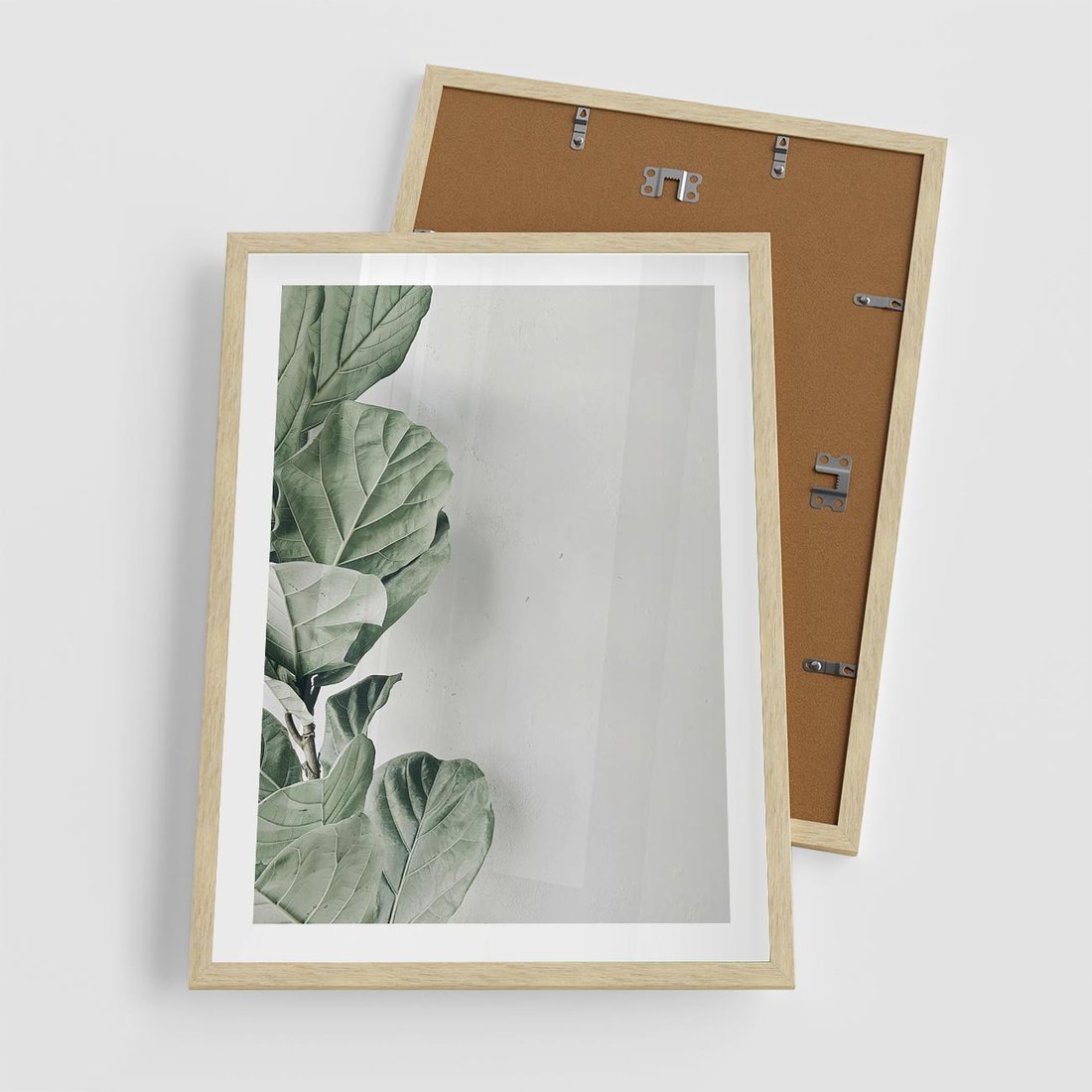 Plakat w ramie 50x70 - Minimalistyczna Harmonia: Zieleń Liści - zieone liście, kompozycja - rama drewno