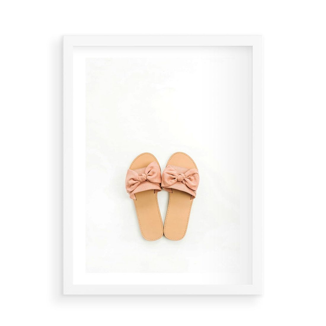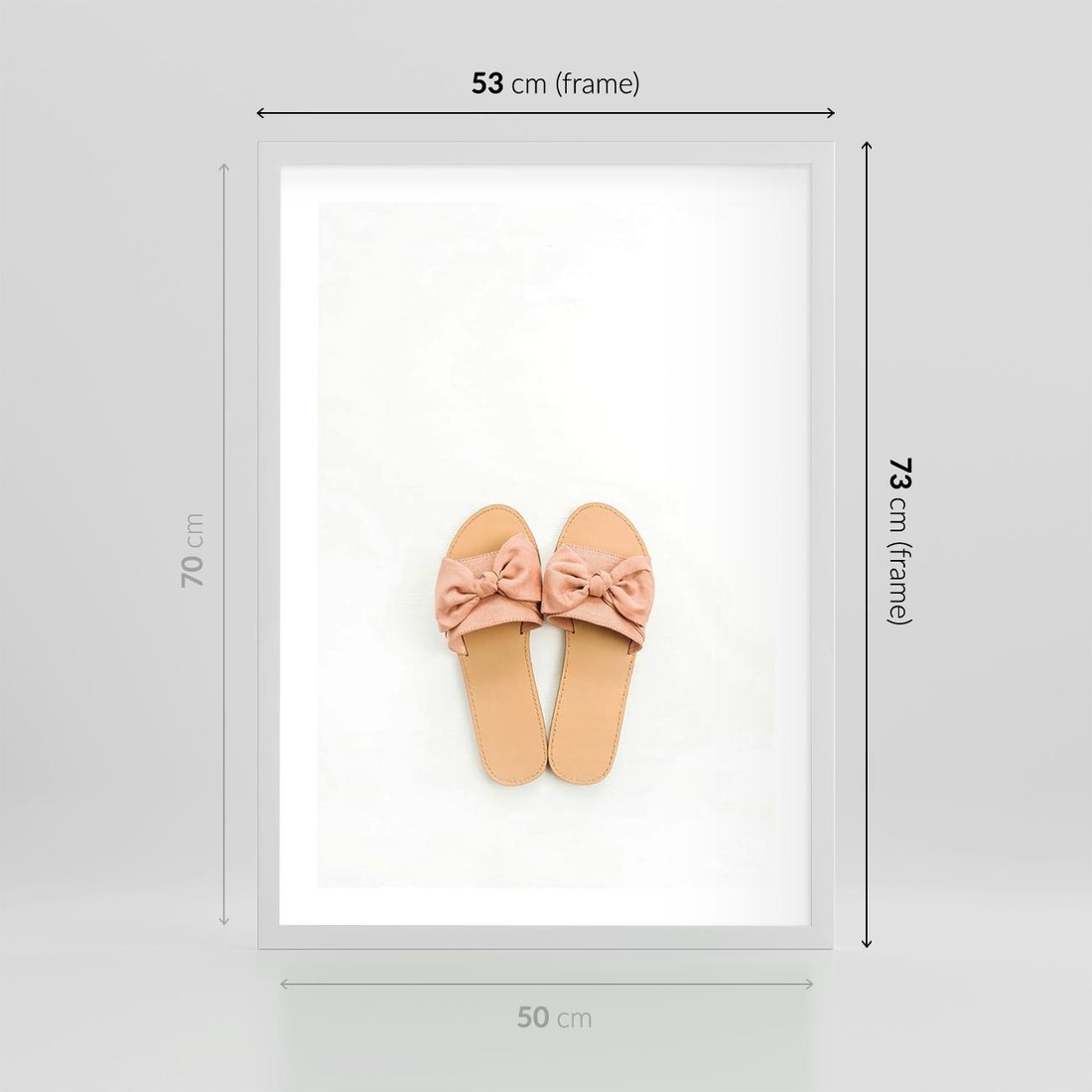Plakat w ramie 50x70 - Minimalistyczna Moda: Klapki na Białym Tle - klapki, minimalizm - rama biała
