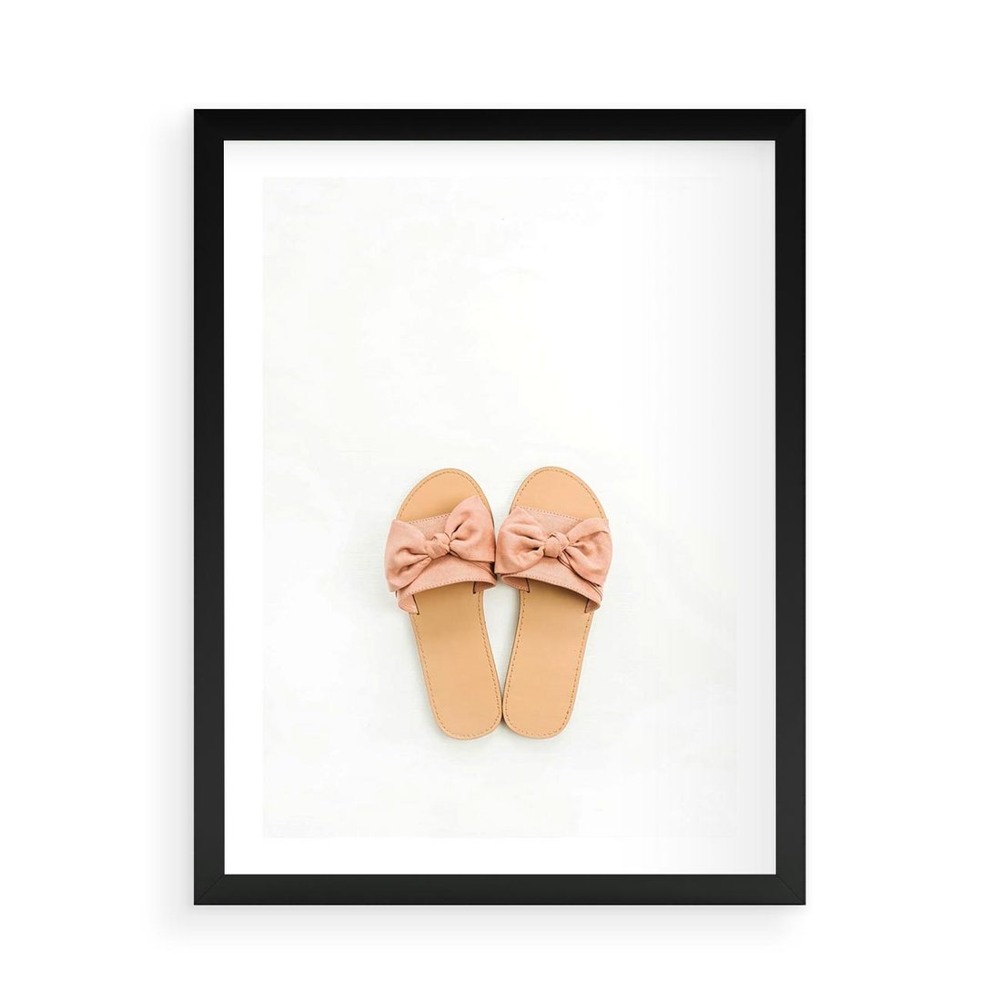Plakat w ramie 50x70 - Minimalistyczna Moda: Klapki na Białym Tle - klapki, minimalizm - rama czarna