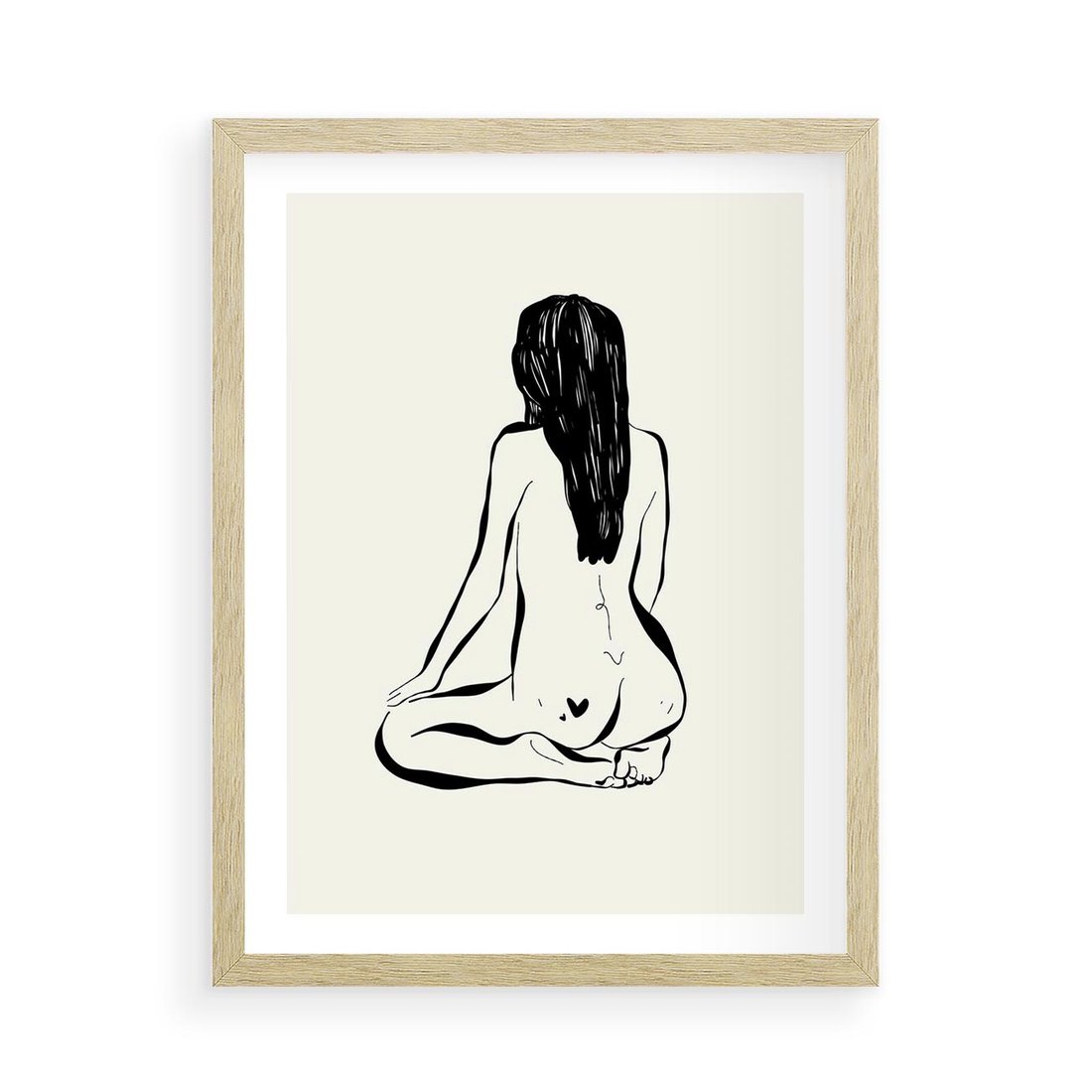 Plakat w ramie 50x70 - Minimalistyczna Piękność: Kobieta w Sztuce - grafika minimalizm, rysunek kobiety - rama drewno