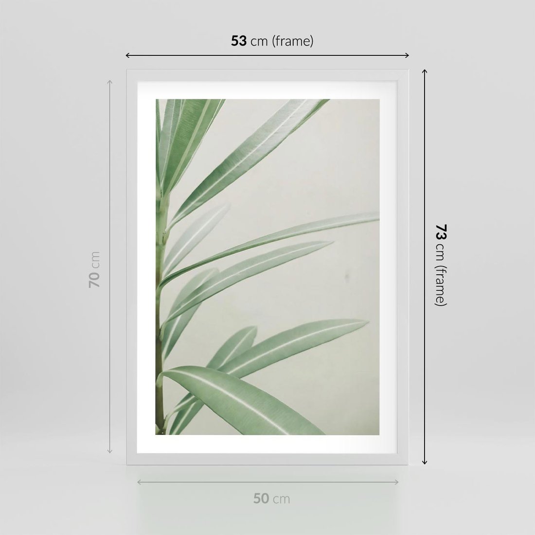 Plakat w ramie 50x70 - Minimalistyczna Tropikalna Harmonia - tropikalna roślina, zielone liście - rama biała