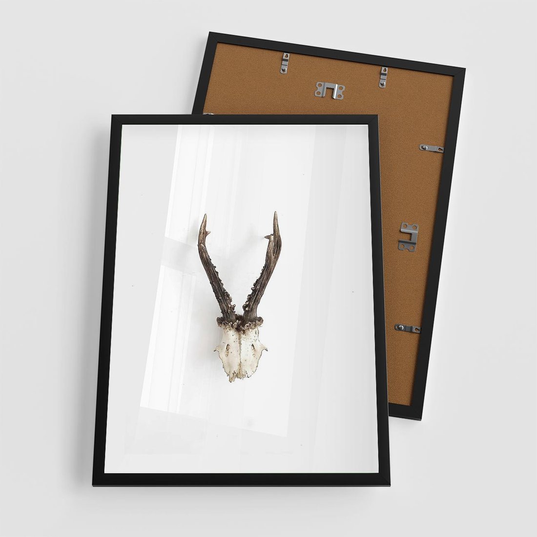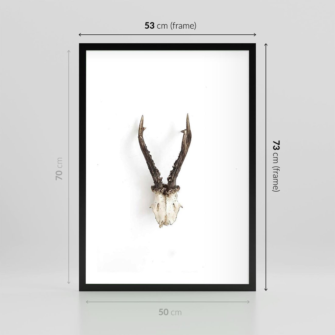 Plakat w ramie 50x70 - Minimalistyczne Poroże Jelenia - poroże jelenia na ścianie, minimalizm - rama czarna