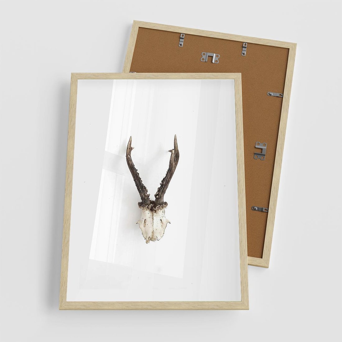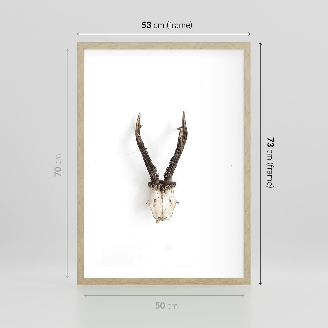 Plakat w ramie 50x70 - Minimalistyczne Poroże Jelenia - poroże jelenia na ścianie, minimalizm - rama drewno